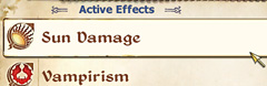 次に,症状が第二段階に達したバンパイアは,太陽の光からダメージを受けるようになる(サンダメージ)。これも当然,段階が進むごとに受けるダメージ量が多くなっていく。これはかなり手痛いペナルティだ。なにせ,日中に外で突っ立っているだけで,死んでしまうのである。野外で夜から昼にかけてRest(時間を進める)すると,午前6時を少し過ぎたところでいきなり悲鳴が聞こえて,ロード画面から通常画面へと戻り,自分の死体が現れるといった具合だ。