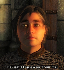 実験してみたところ,第三段階までなら,だいたい会話に応じてくれるようなのだが,第四段階バンパイアになってしまうと,一般人とのコミュニケーションはほぼ不可能なようだった。ただし,ミッシェルの加入している暗殺者ギルドと盗賊ギルドの関係者は,こちらが第四段階のバンパイアであっても,問題なく会話してくれた。盗賊ギルドに紹介された盗品買い取り人はこちらを怖がって取り引きしてくれなかったが,暗殺者ギルドのアジトにいるベンダーは第四段階でも取り引きOKだ。