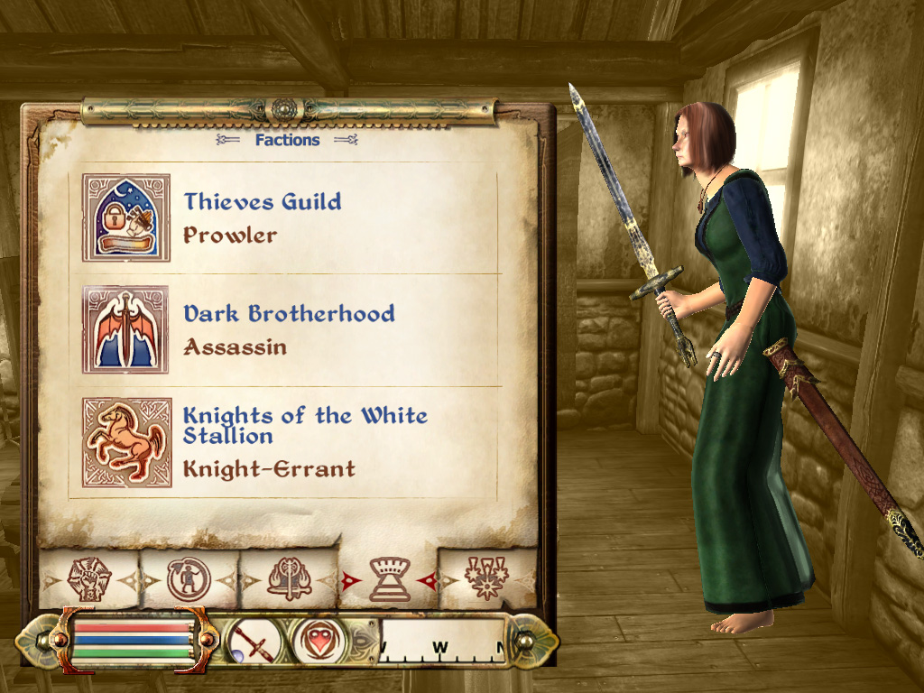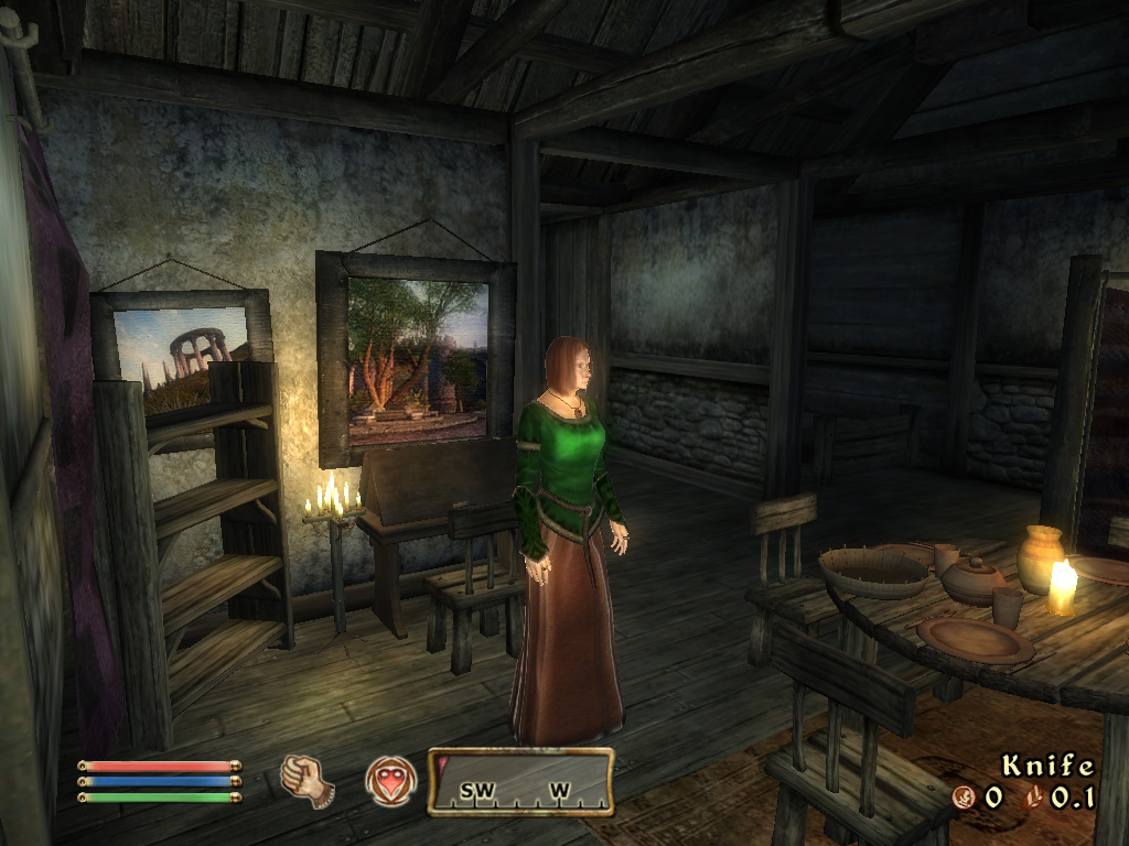 冒険を続けるにあたって,戦力のことだけを考えた場合は,第四段階バンパイアのままでいたほうがよい。ただ,そのままでは買い物がなかなかできないのがつらい。矢とソウルジェム,鍵開け用のロックピックといった消耗品は,しばしば購入する必要があるのだ。それと武器防具の修理。通常の装備の修理はミッシェルにもできるが,マジックアイテムの修理は(修理スキルのレベルが低いので)専門店に頼る必要がある。また,現在の収入は,主に盗賊などから奪い取った装備を売却することで得ているので,できればこれらを手軽に売り飛ばせる環境を保っておきたい。