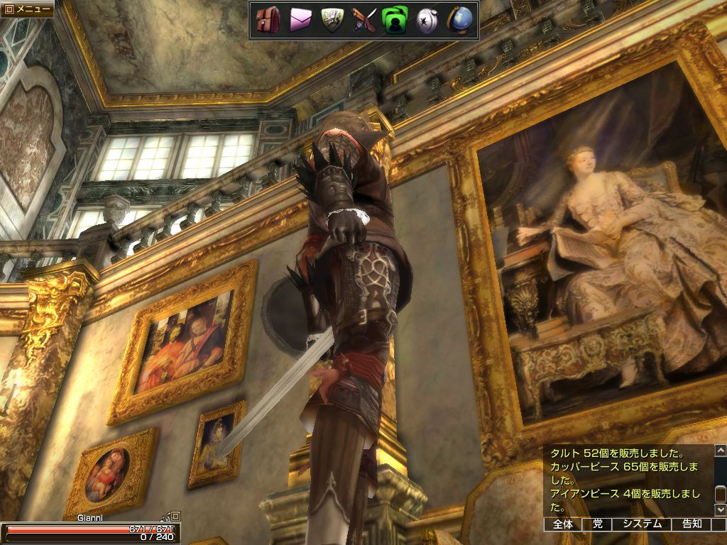 ……母さん,グラナド・エスパダでは言葉すらまともに通じません。「Oops,Oh amazing surprise!」(ブリスティア語)まではなんとなく分かった気もしますが,その間は新大陸発音の「Horrible」なのでしょうか? おまけに別れ際には「私とお話がしたいのでしたら気軽に,んふ,また来てください」なんて言われちゃいました。……なんだかちょっと目が恐い感じです。