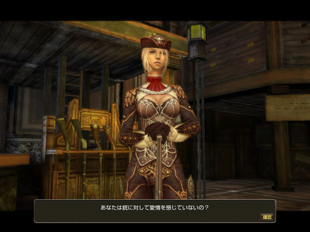 こちらが銃を取り扱う店の店主「ベルネルリ」。えっと,そんな持ち方してますが,まさか弾が入ってたりしませんよね? |
