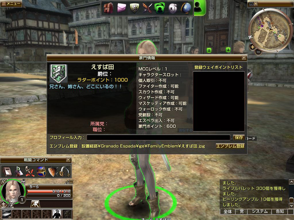 そんな,親切な街の人からは,プロフィールの書きかたを教わる。プロフィールの一言は誰でも外から参照できるので,気の利いたセリフの一つも書きたいところ。早速「尋ね人の時間です」とか,微妙に分かりづらいネタを思い浮かべつつ,家族の情報を募ってみよう。