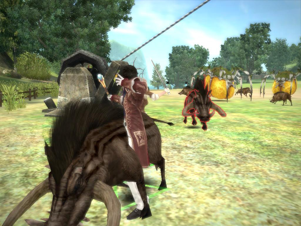 さて,当面は足手まといな兄を抱え,頭も抱えた主人公だが,ここグラナド・エスパダで生きていく手立ては,日銭稼ぎだけではない。リボルドウェからほど近いフィールド「フェルッチオ・ジャンクション」には,一つ叩けばもぎたてのマンゴーが,も一つ叩くと淹れたて紅茶が落ちる,そーんな不思議なイノシシが出没するのだ。