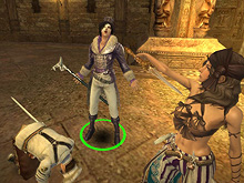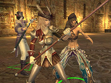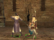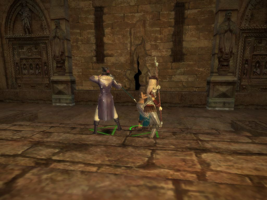 さて,前回のテトラ遺跡盗掘には,頼りになるリボルドウェ兵士,おるそん兄さんが同行してくれたわけだが,今回は民間人3人組で挑戦することになる。なお,これまで長剣と盾を使ったスタンス「ハイガード」を愛用してきた主人公の装備は,おるそんから譲り受けた槍に替わっている。