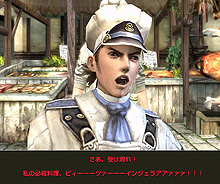 作戦どおり歌が気になって,壁の向こうから姿を現したダンナ。あ,あなたは“炎の料理人”じゃないですかっ。彼の名は「あるばーと・えすぱ田」。婿養子の形でえすぱ田を名乗っている。え,えーと,ねりー姉さんがどうやって自分の店を手に入れたのか,にわかに気になってきましたが,聞かないほうがいい気もします。