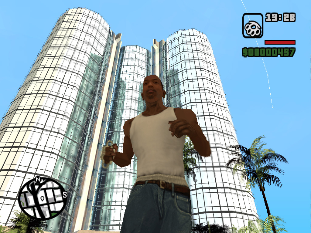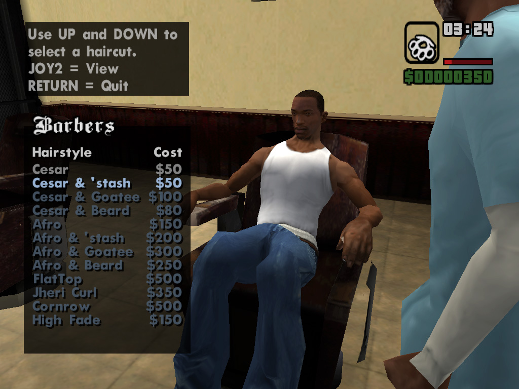 | 主人公のカール・ジョンソン(CJ)。本物のストリートギャングがやりそうな犯罪なら,たぶんなんだってやってくれる頼もしいヤツ |
