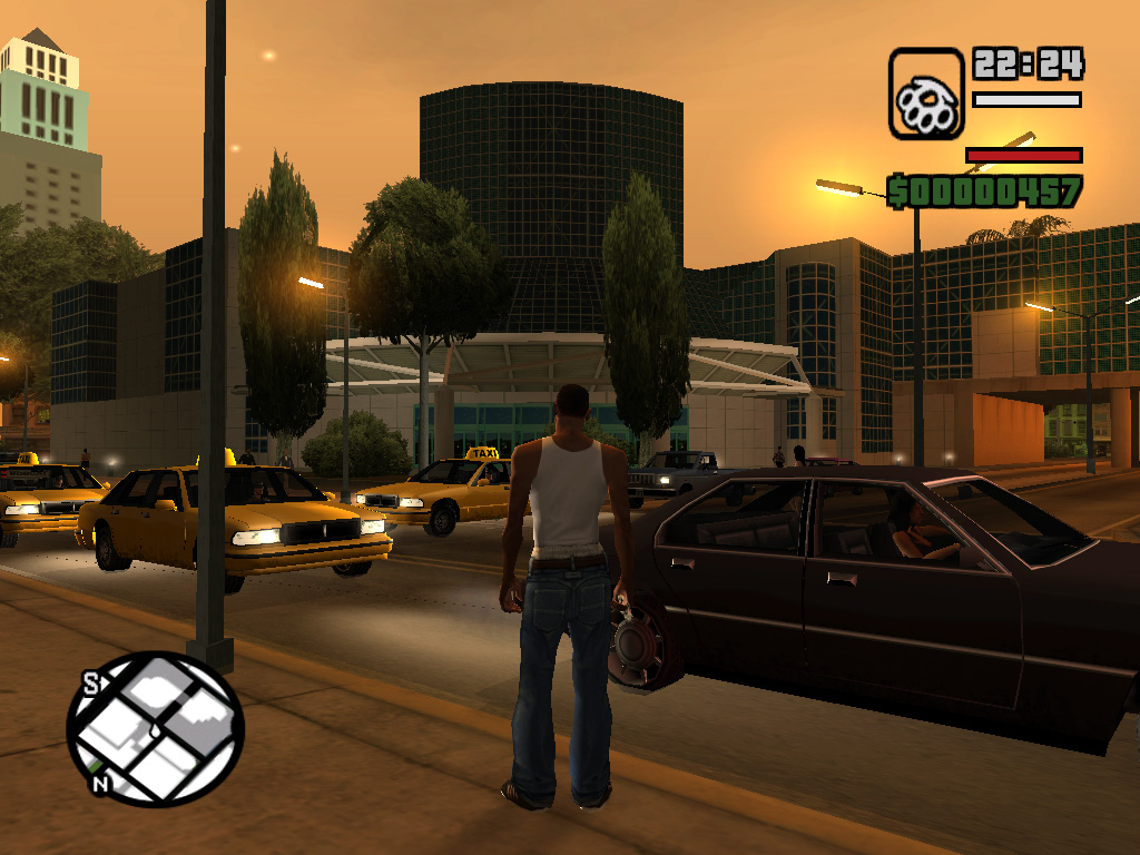 謎の暴れん坊(GTA3),マフィアのチンピラ(Vice City)ときて,今回は黒人青少年達のストリートギャングが主人公だ。「ヨーメーンカモンメーン」の世界である。