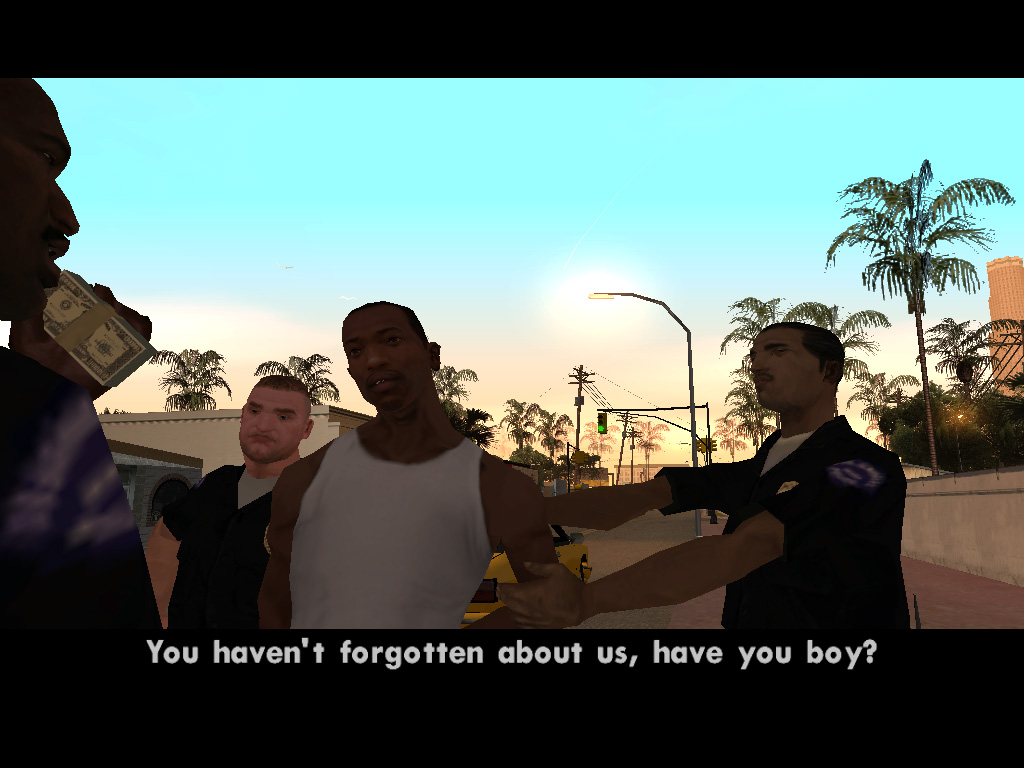 次週以降,サン・アンドレアスのあっと驚く治安の悪さについて,現地直送でお届けしていく予定だ。ゴールドのチェーンを首から何本もぶら下げ,民家に向けてマシンピストルを乱射する予定である。ヒップホップのミュージシャンをリスペクトしつつ肩を揺らし,地面を何度も指さしながら歩き,夜はドラム缶で木材を焼いて焚き火するのだ。ええと,私のストリートギャングのイメージ,あってます?