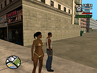 | GTAシリーズ恒例ではあるが,やはりセクシーなお姉ちゃんが頻繁に道を歩いている。アメリカってこういう国なのかと思われがちだが,筆者の近所には,こういう女性は全然いない。おかしいなぁ |