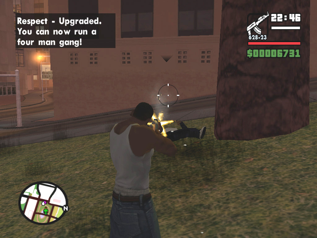 兄貴のスィート(比較的悪い人)から「Doberman」というミッションを受けるのだが,これは「ブラザーよ,グレン・パーク(比較的悪い場所)のテリトリーが対立グループの手に落ちてかなりファッキンなので,おまえ一人で武器を持って殴りこんで敵を皆殺しにしてリスペクトをゲットしろ」という,間違えた優しさにあふれたもの。オーライ兄貴。