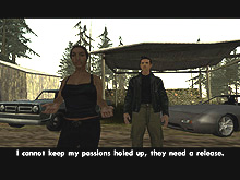 ここでまず出会うのが,カテリーナという変な女。この名前を聞いて,GTA3のプレイヤーなら「もしかして?」と思うところだ。筆者も思った。だが,あちらがソフィスティケートされた"悪い女"という雰囲気だったのに対し,こちらはスペイン訛りでうるさくまくしたて,何かというとすぐに発砲するファッキンな女だ。