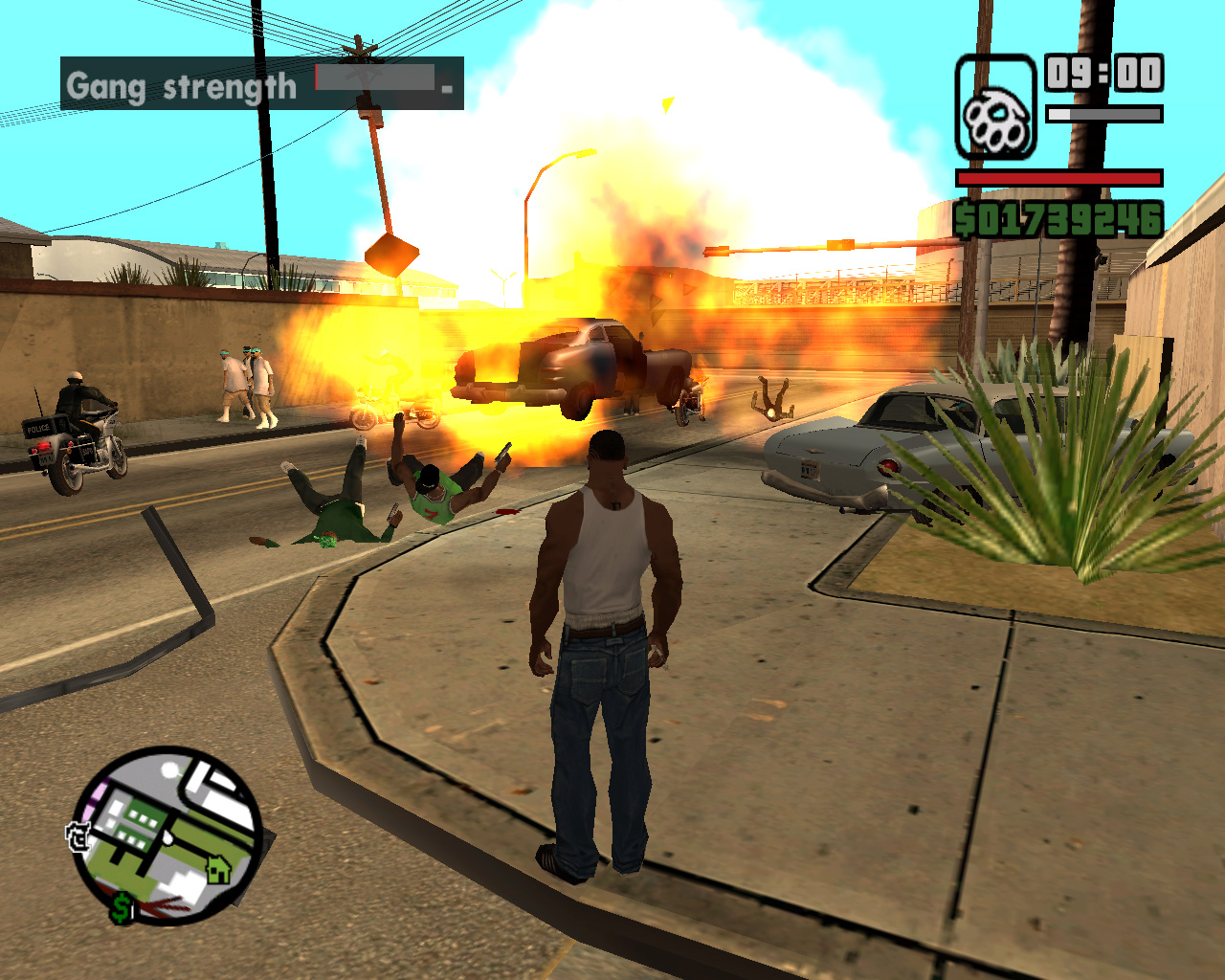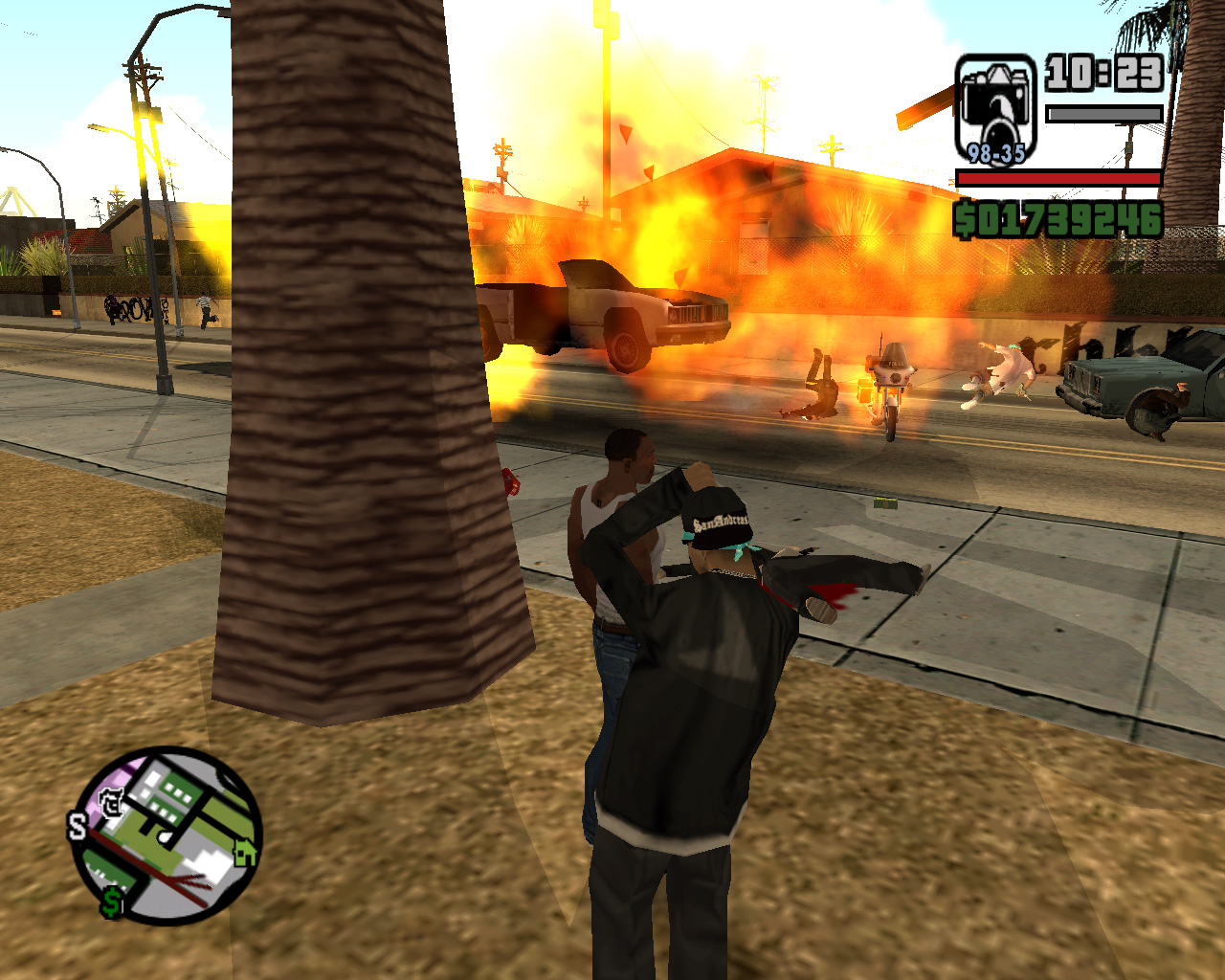 さんざん悪事を重ねてきたC.R.A.S.H.のティンパニー巡査も逮捕され,いよいよ年貢の納め時かと思いきや,なんと! 陪審員の評決は無罪。ティンパニー巡査釈放。かなり勘の悪いロス・サントスの住人も,さすがにこれは怪しいと思った。ガッデム,アスホール,ボーシッ。で,そういうときにはどうするか? 答えは暴動だ。とりあえず暴れとけ,って感じで,イースト・ロス・サントス一円に大暴動が発生するのだ。やはり,ロスといったら暴動ですね。