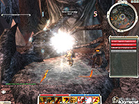 実際に対人戦に入ると,敵も自分と同じスピードで細かく動き回るため,RPGモードよりもかなりスピーディに感じられる。ただでさえ展開の早いGuild Warsの戦闘だが,対人戦では自分を含めて8体以上のキャラクターが画面内を縦横無尽に駆けめぐる。最初の数戦は狙った戦術を決めるどころか,目標のキャラクターを目で追い続けるだけで精一杯な場合も多いだろう。ハイレベルなアクションゲームと言い切ってよい。