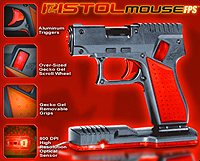 しかし,やはり真のゲーマーを自認するのであれば,MonsterGecko社の「PistolMouse FPS」を使いたい。その名の通り,ピストル型のFPS専用光学式マウスで,800dpiの光学センサーは通常通り机上で動かす仕組みである。マウスクリックは,左クリックが弾きがねに,右クリックが弾きがねカバーの下部に割り当てられているため,ちょっとした慣れが必要だ。