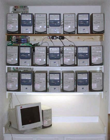 | ソーマン氏が制作した「ゴールド農場」の写真がインターネット上で公開され,一時はファンの間でも大きな話題となっていた。最盛期で30台のコンピュータを稼働させていたという |