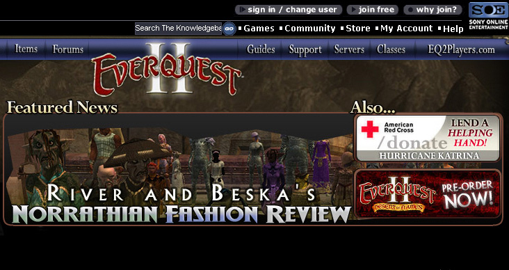 Sony Online Entertainmentは,アメリカ南部に大きな爪痕を残したハリケーン災害に迅速に対応し,米軍が被災地に到着する以前の9月2日に義援金の募集を表明。「EverQuest II」のゲーム中に"/donate"という新しいコマンドを追加して,赤十字の公式サイトを開けるようにした。