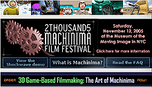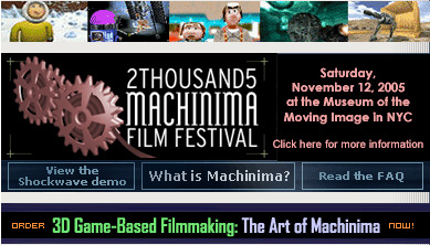 The Academy of Machinima Arts and Sciencesが主催する本年(2005年)度のMachinima Film Festivalは,ニューヨークで11月12日に開催される予定だ。ケーブル局のIFCや,NVIDIAがスポンサーとなっており,年々本格的になっている。