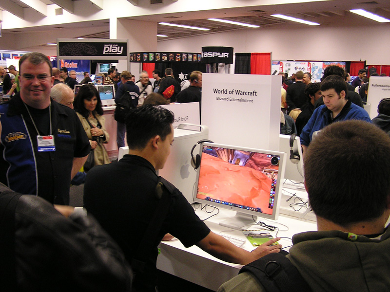 開発元のBlizzard Entertainmentは,「Diablo II」以来,常にWindows版とMac版を同時リリースしており,2005年7月初旬にリリース予定の拡張パック第一弾「World of Warcraft: The Burning Crusade」も例外ではないという。会場でも朝から熱狂的なプレイヤー達がモニター前にたむろし,かなり専門的な質問を係員に投げかけるなどしていた。
