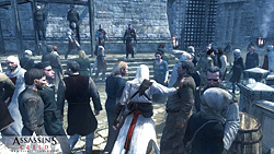 CG映画のような雰囲気で,中世アラビア風の町で暗躍する主人公が登場するUbisoftの「Assassin's Creed」。人波を押しのけるように進んでいくキャラクター技術が目新しい