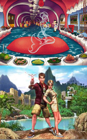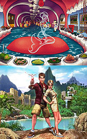 上が,ロウ氏最後の“ラリー”作品である「Leisure Suit Larry 7: Love for Sail!」で,下はiBase Entertainmentが2007年のリリースに向けて開発中の「Sam Suede: Undercover Exposure」。どちらも,イケてない男が女性のハートをガッチリと掴むために邁進するという内容だ