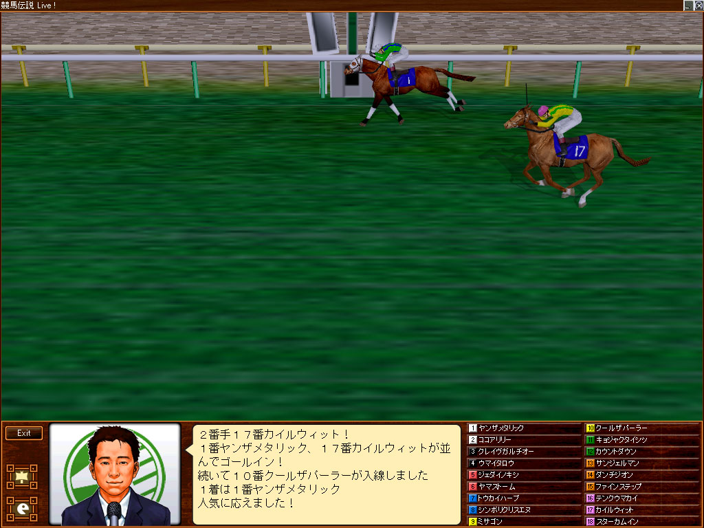ダンチヒ産駒ということで,短めの1600mでデビューしたダンチジオンだが,ほぼ見せ場もなく馬群に沈んでしまった。レースは直線に入って切れ味鋭く伸びてきた1番のヤンザメタリックが,人気に応える活躍を見せて勝利している。うーん,残念無念。