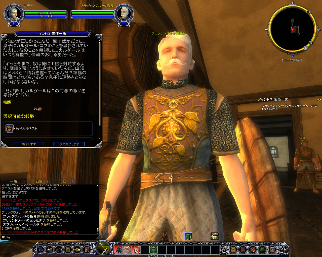 しょうがないから酒場で飲んでたら,ブラッケンブルックっていう偉そうな髭を生やしたおっさんが,人手が足りないからミンストレルとして自警団の一員に入ってくれっていうんだ。