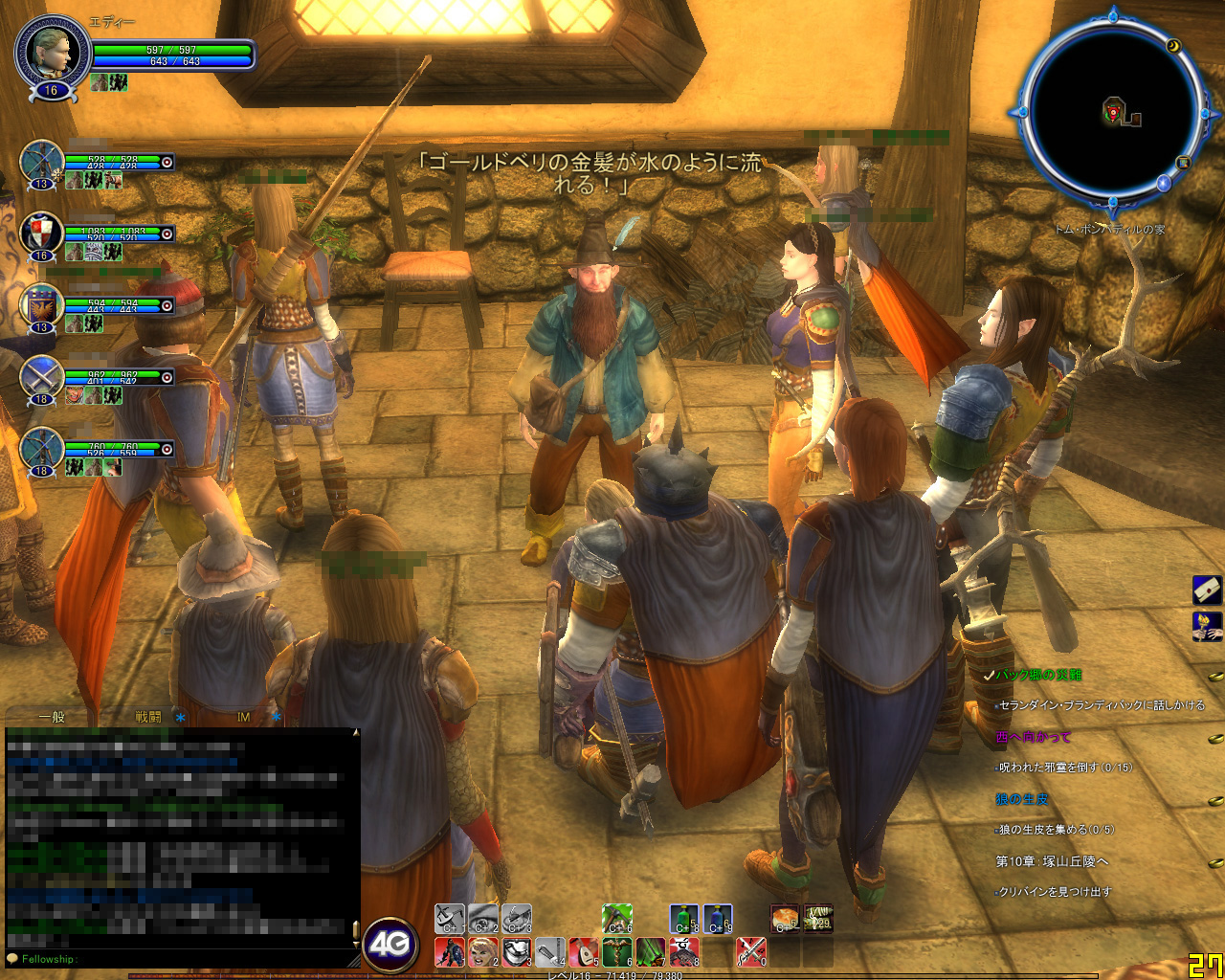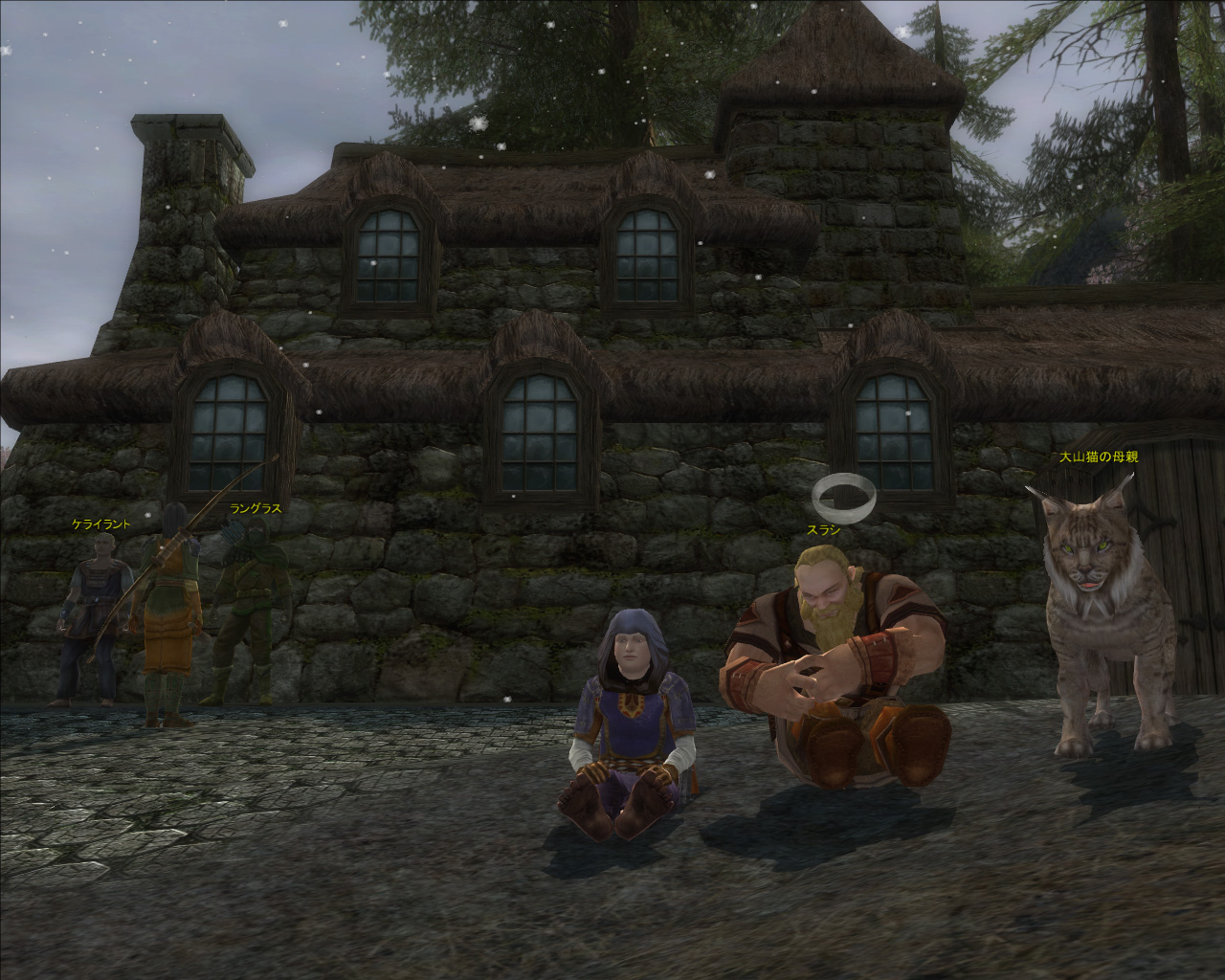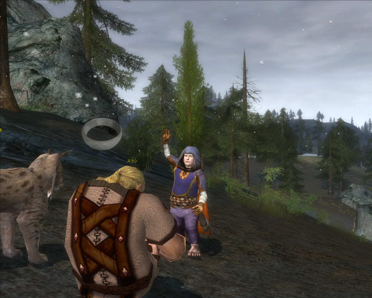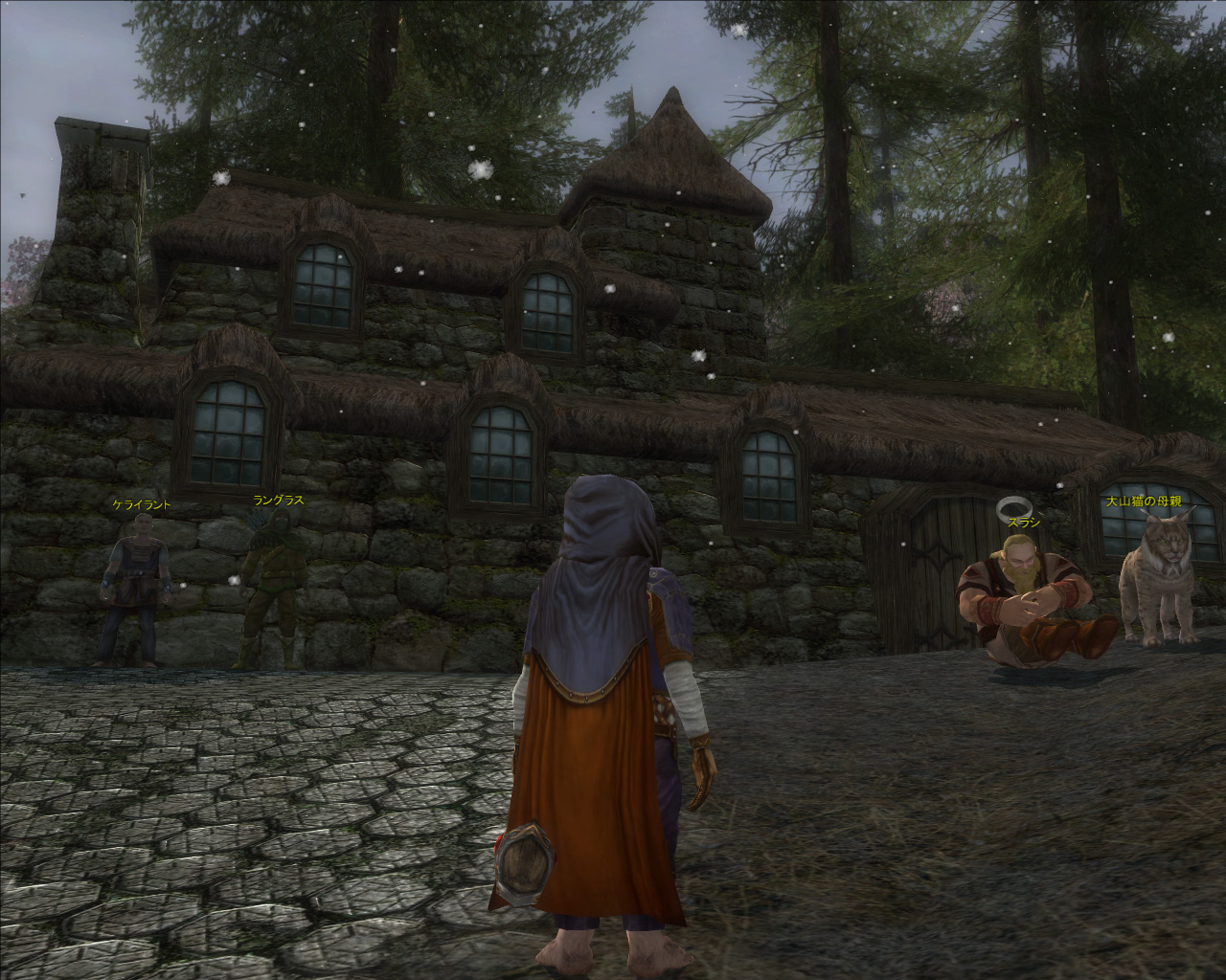 エディーが吹雪を避けた小屋にはケライラント,ラングラス,スラシという三人のクエストNPCがいる。野伏のラングラスは,エピッククエストという本作のメインクエストに関わっているので,エルフやドワーフでプレイしている人なら,いつかは必ず話すこととなる人物だ。