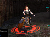 紫色の照明が,神殿の柱や像をほのかに照らすさまは,すっごい幻想的だよ。そこにエルフのオネーチャンが一人ぽつんと立ってるんだけど,これがまたきりっとした美人でさぁ,エヘヘ。オイラ好みっつーのか,なんつーのか,まあそういうわけさ,エヘヘ。うっせーな,赤くなんかなってねーよ。