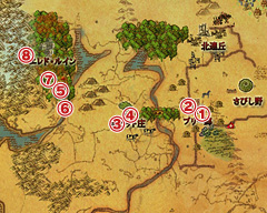 小屋の北側一帯に広がる森林には,そこかしこに熊が棲息しており,通りかかったプレイヤーに襲い掛かってくることも多い。森の奥はドルハンドの砦,亡霊がうろつく塚山,巨大なクモがはびこる谷間などの危険な地域が広がっている。