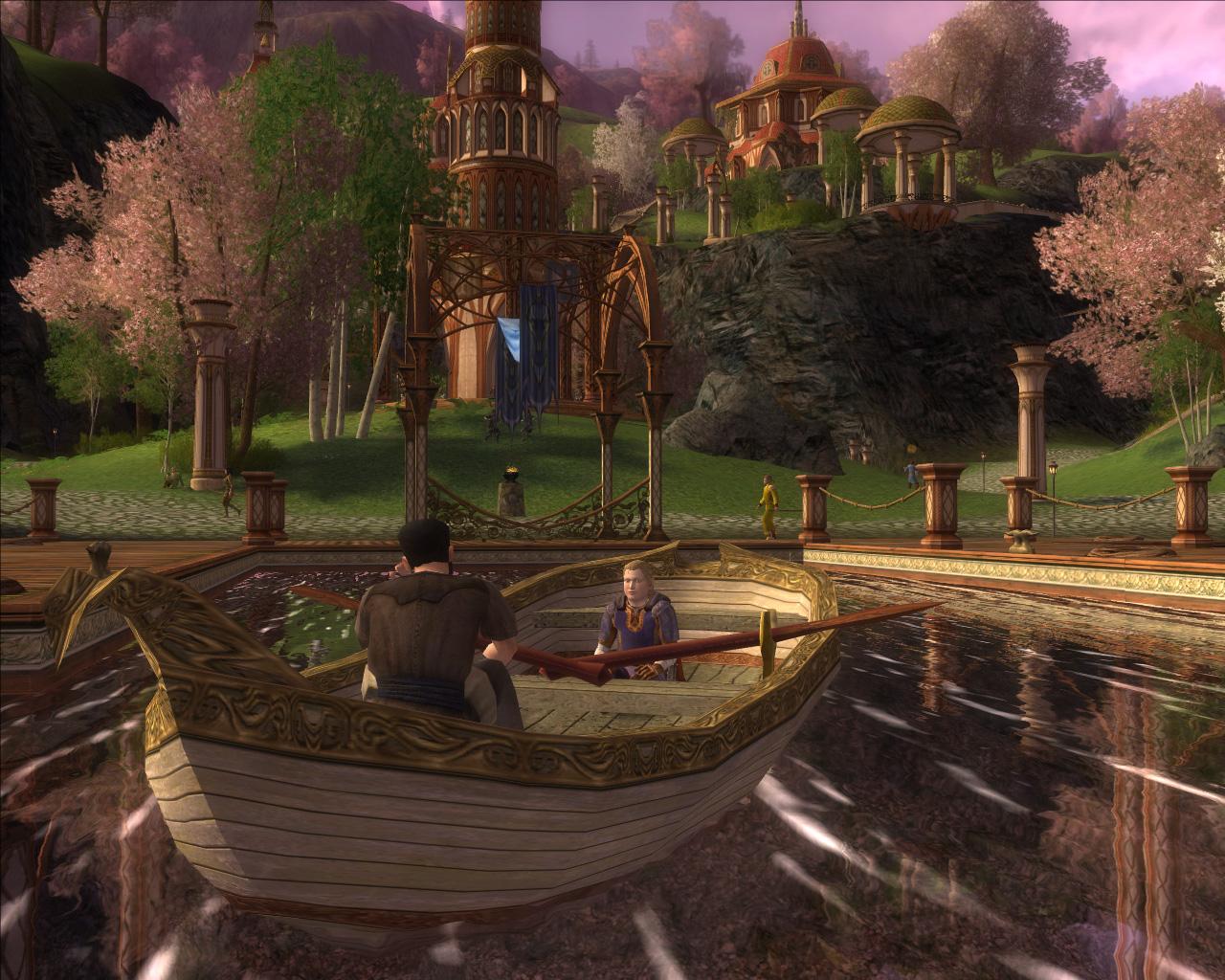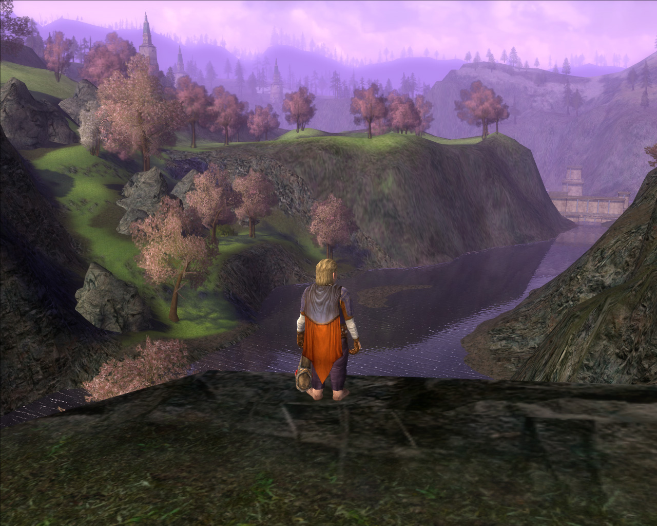 ホビット庄からエルフ達の住む里へは,ホビット庄の北西にある針穴村を経由して行くことになる。大きな橋を渡り,大瀑布を横目に見ながらゲートをくぐれば,そこはファラスロルンだ。
