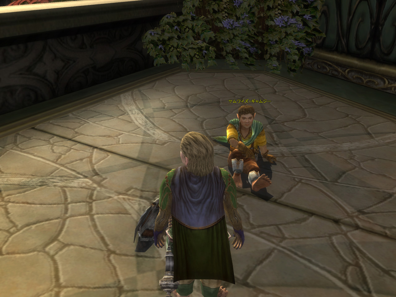 なんとかかんとか無事に謁見も終えて外に出たら,とどめのビックリ,そこにフロドがいたのさ。あんなところでホビット仲間に会えるとは思わなかったから,すごく嬉しかったよ。向こうも嬉しかったみたいで,しばらく二人で散歩した。