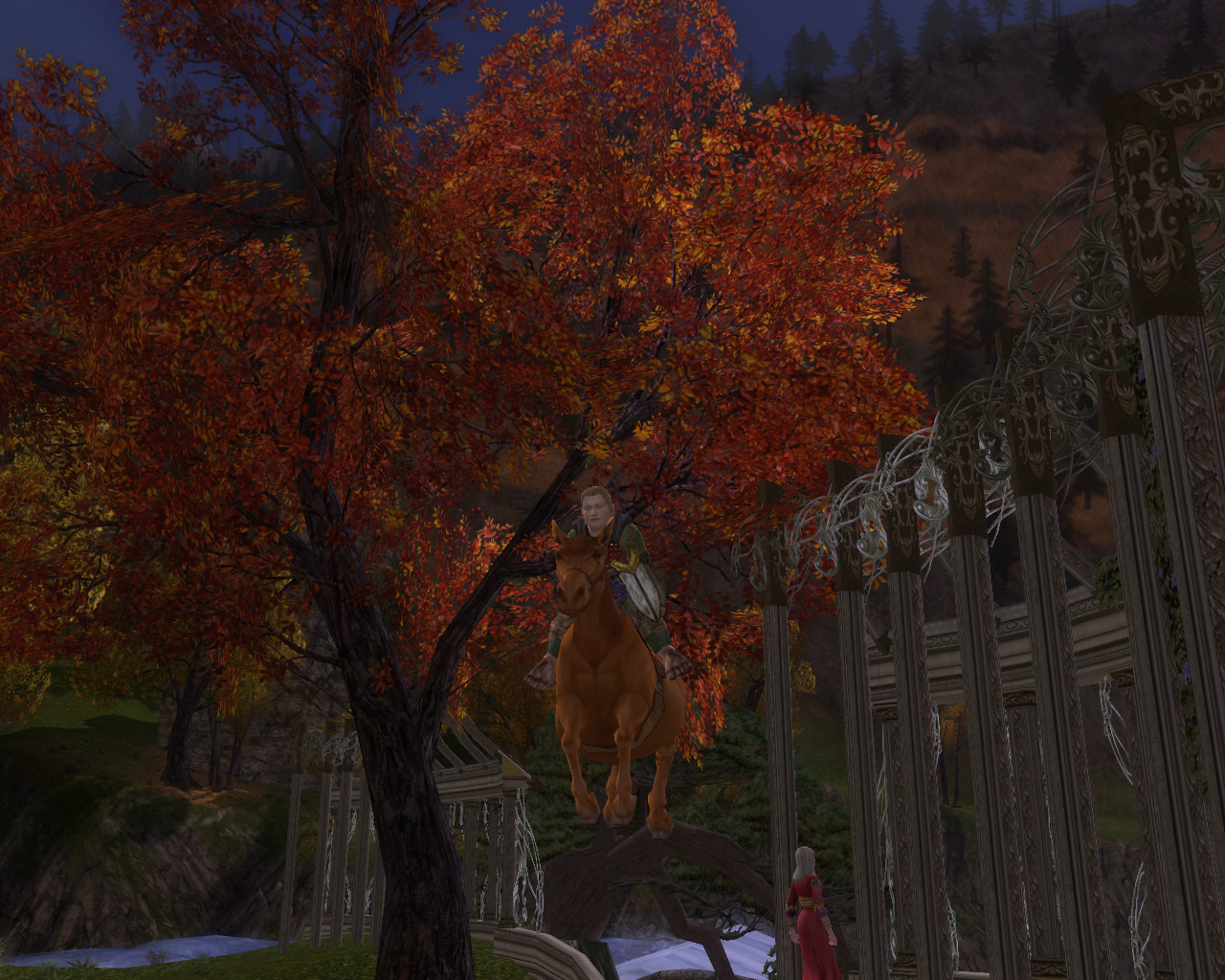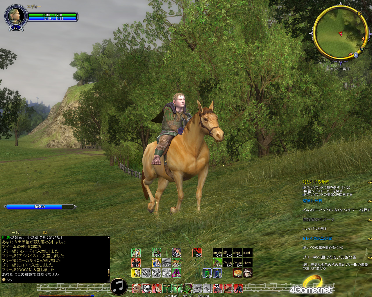 それが終わると,馬に乗れる素質があるかどうかをエオガルに見せなきゃならないんだ。これは馬に乗ってエオガルの農場を一回りしてくるだけなんだけど,障害物をよけたり飛び跳ねたりして制限時間内に終わらせないといけないんだ。