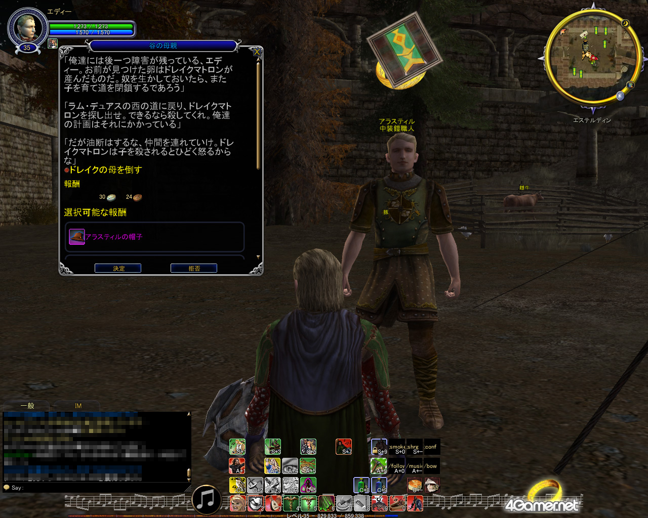 あれは北連丘の野伏のキャンプ,エステルディンにいたときのことさ。最近物騒なことが多い中つ国。オイラの防具もかなり傷んできたんで修理に出しに行ったのさ。