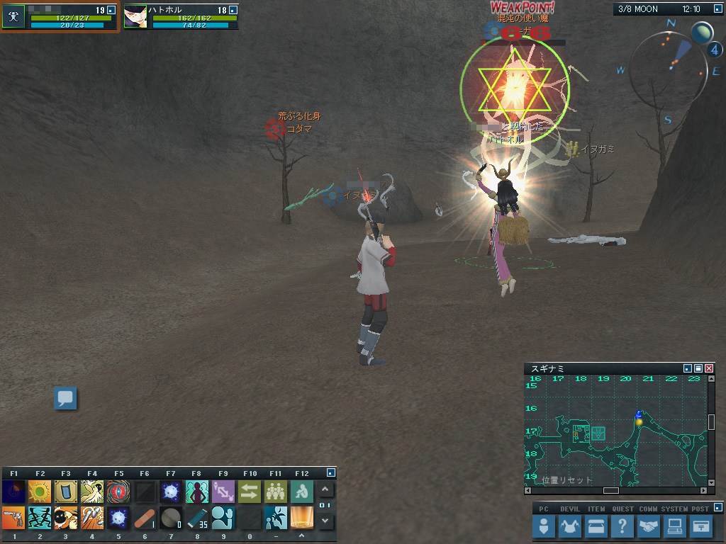 イチガヤフィールドは,敵悪魔のレベルは高いが,特殊攻撃をしてくる敵は少ない。経験値稼ぎに適した場所である |