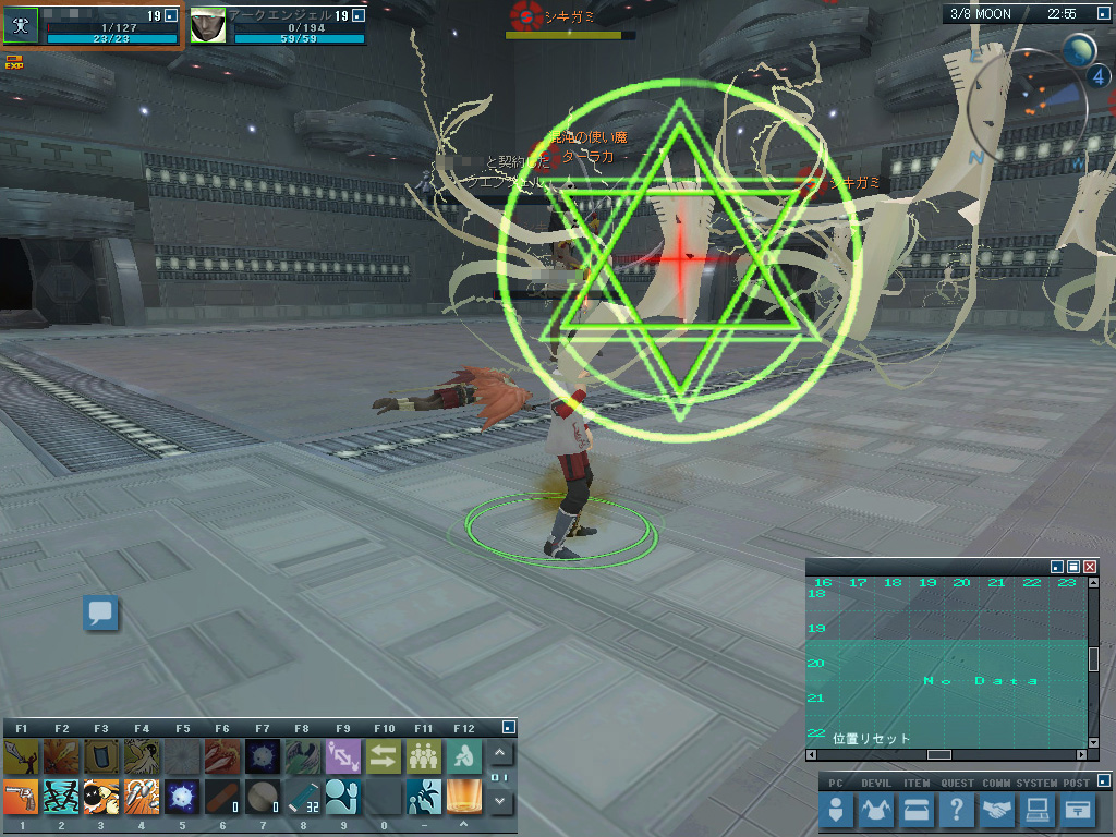 とりあえず,ボス部屋の前にいる「研究所の見張り」に話しかけると,「修正ファイル」を当てるか聞いてきた。……どうやらこれ,魔階セルタワーの魔除け祈願システムみたいに,特定の敵悪魔を出現させないためのものらしい。キリンの相手をするのもいやだったし,とりあえず,ものは試しと玉砕覚悟で乗り込んでいったら……本当に玉砕した。もう笑うしかないくらい強かった。