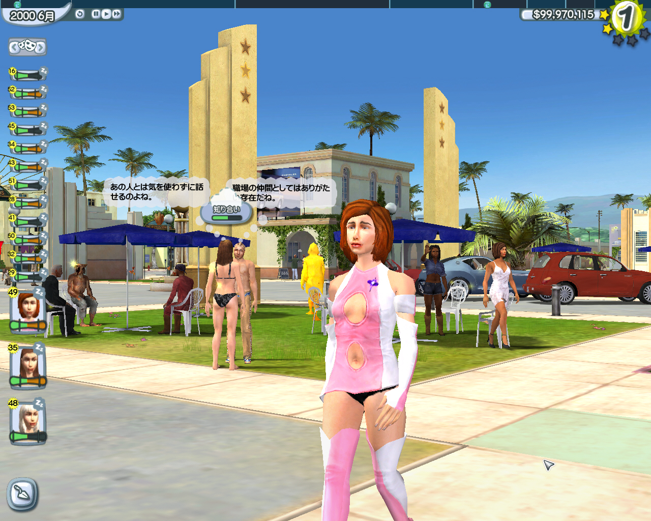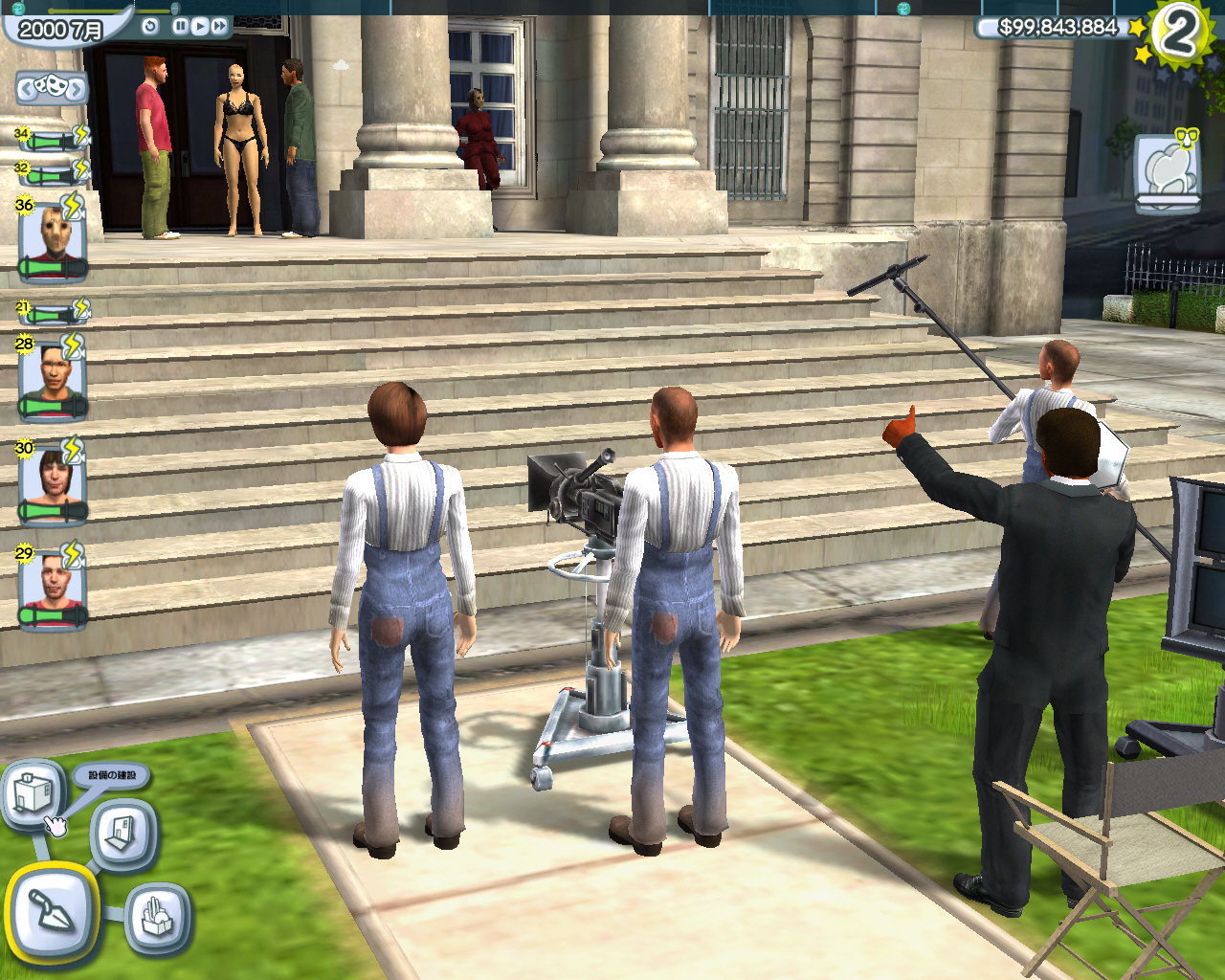 そのため,スター達の「イメージ」パラメータが下がったら,衣装部で普段着を着せ替えさせてご機嫌を取るわけだ。また,映画の撮影時も,自分に合っていない役柄や衣装だと,イライラして撮影途中で逃げ出したりする。まったくプライドが高くワガママな連中であるが,人に見られる職業である以上,外見に人一倍うるさいのは現実の俳優さんと同じ……かな?