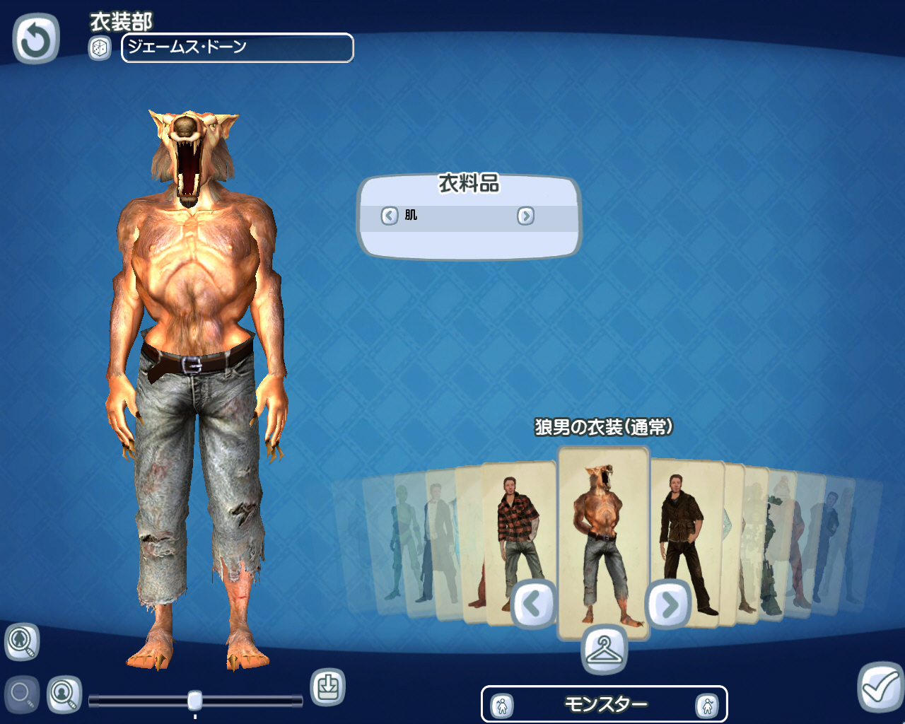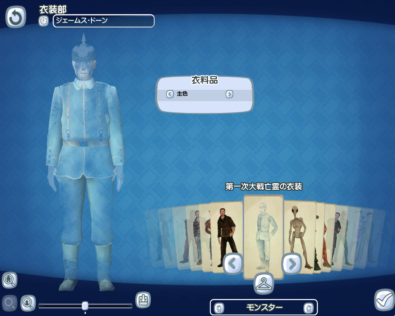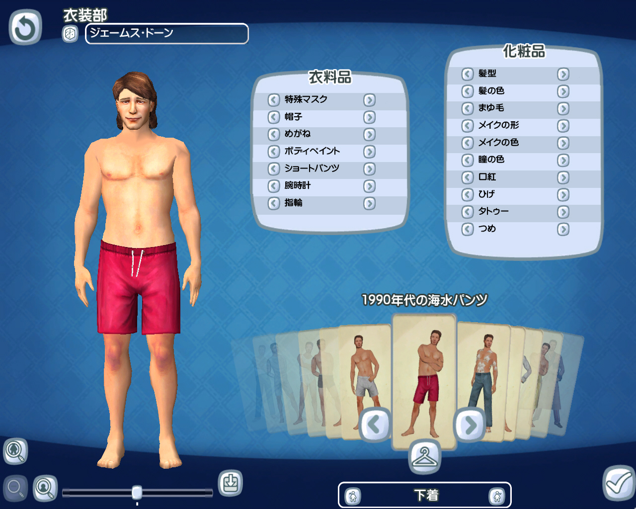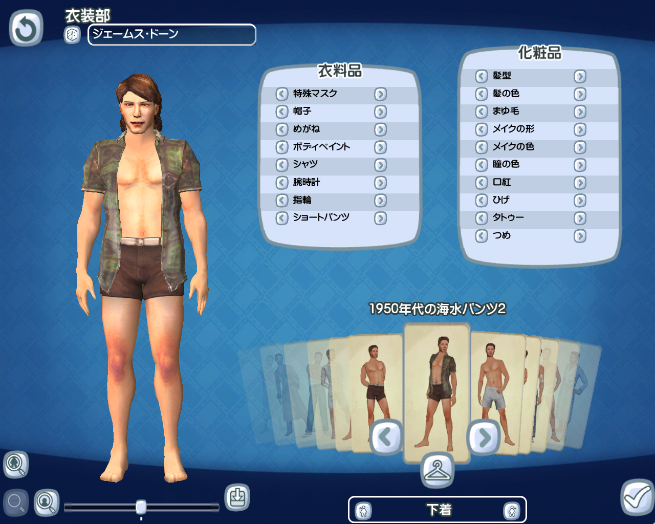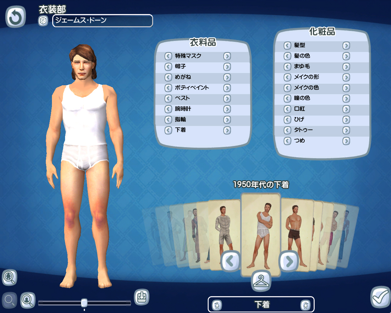 というわけで,うるさいスター達のために多くの衣装が用意されている本作だが,今回改めて収録衣装を数えてみると,シャレにならない数にのぼった。カジュアル,軍隊,西部など八つのカテゴリに分けられて,男女ごとに用意された衣装は何と250種類以上! さすがに全部並べて掲載するのは無茶なので,一部チョイスして紹介していく。実際には,この数倍は収録されているのだ。