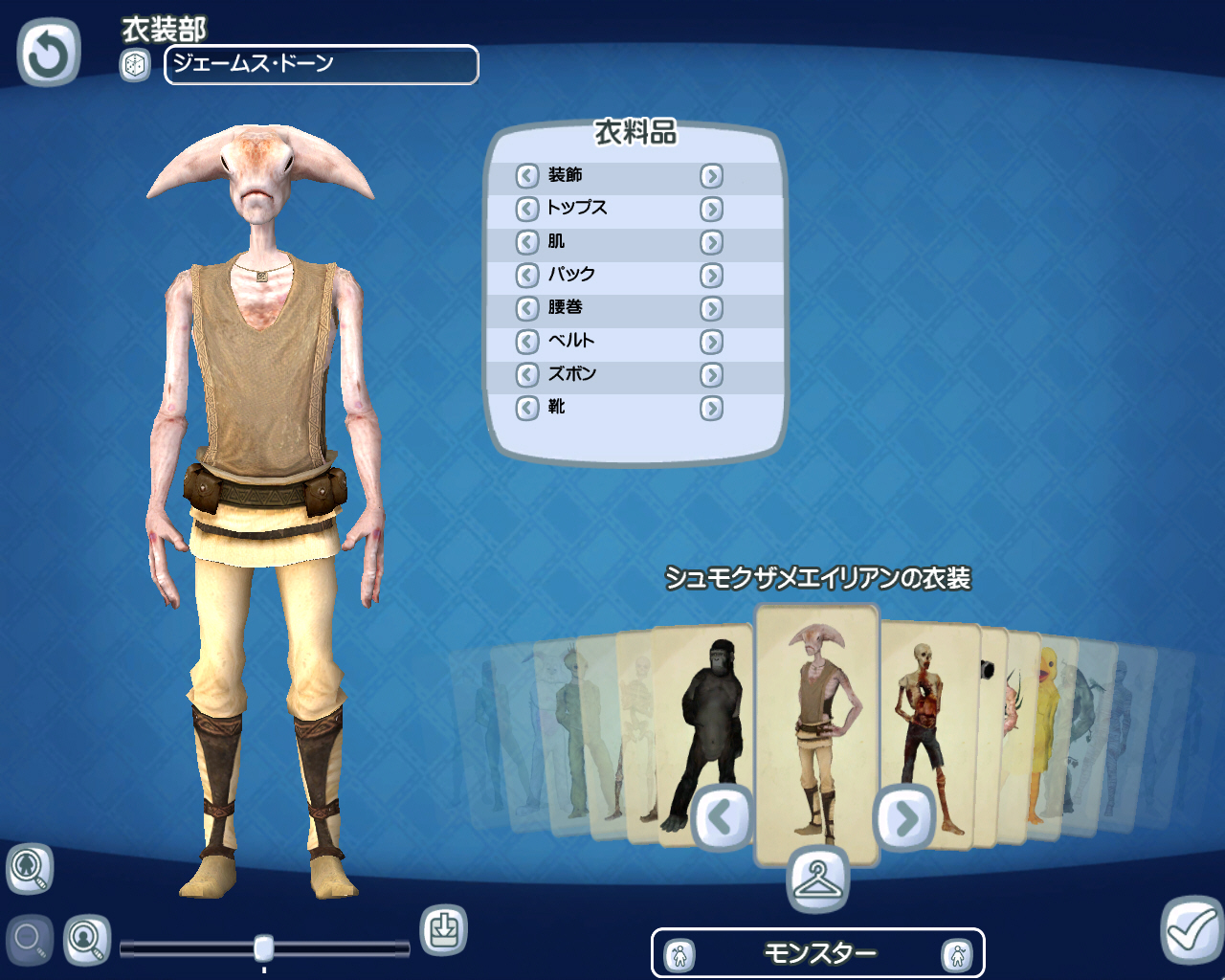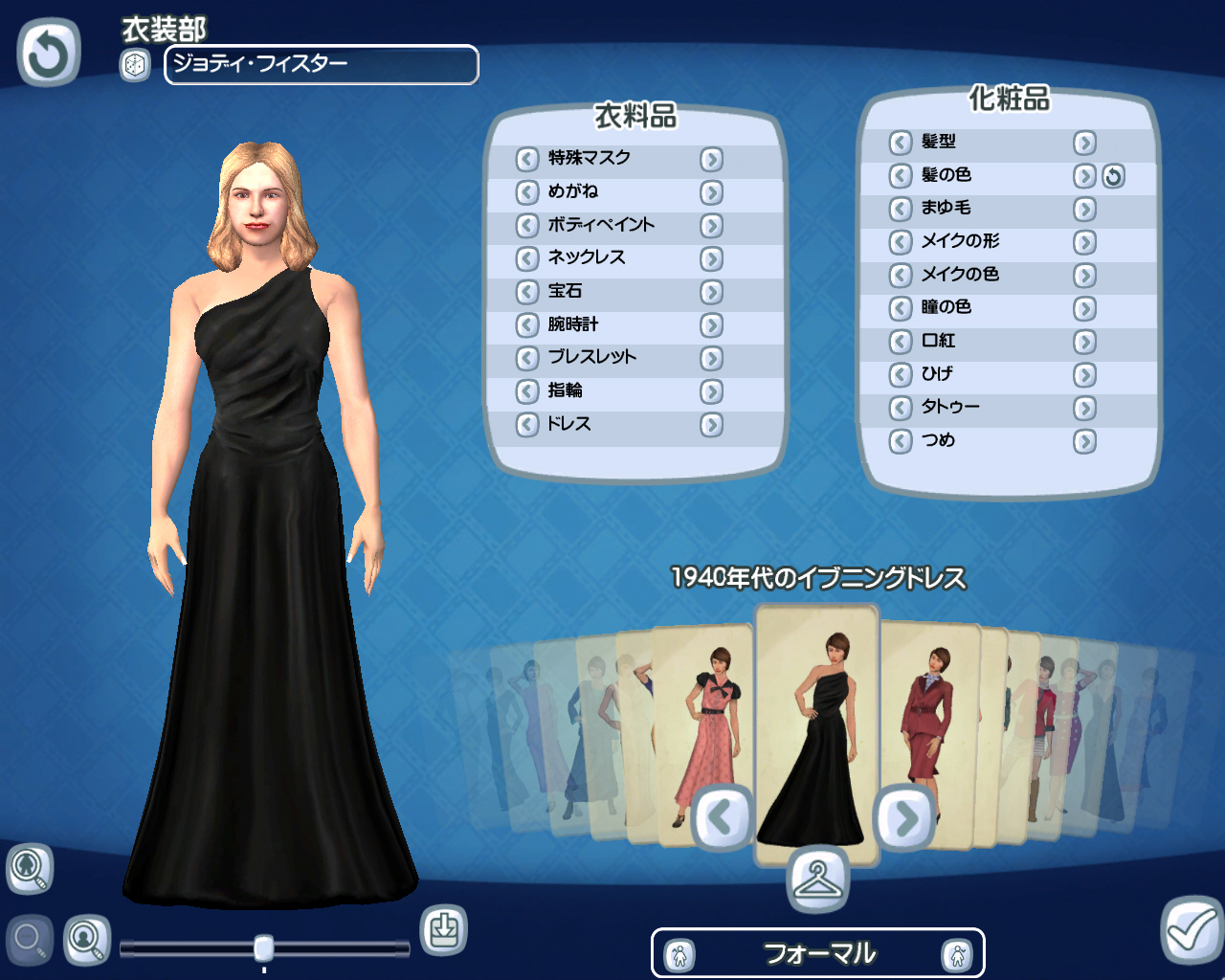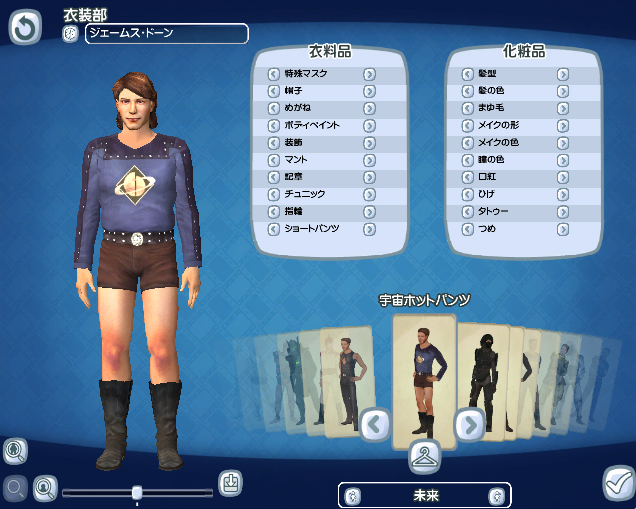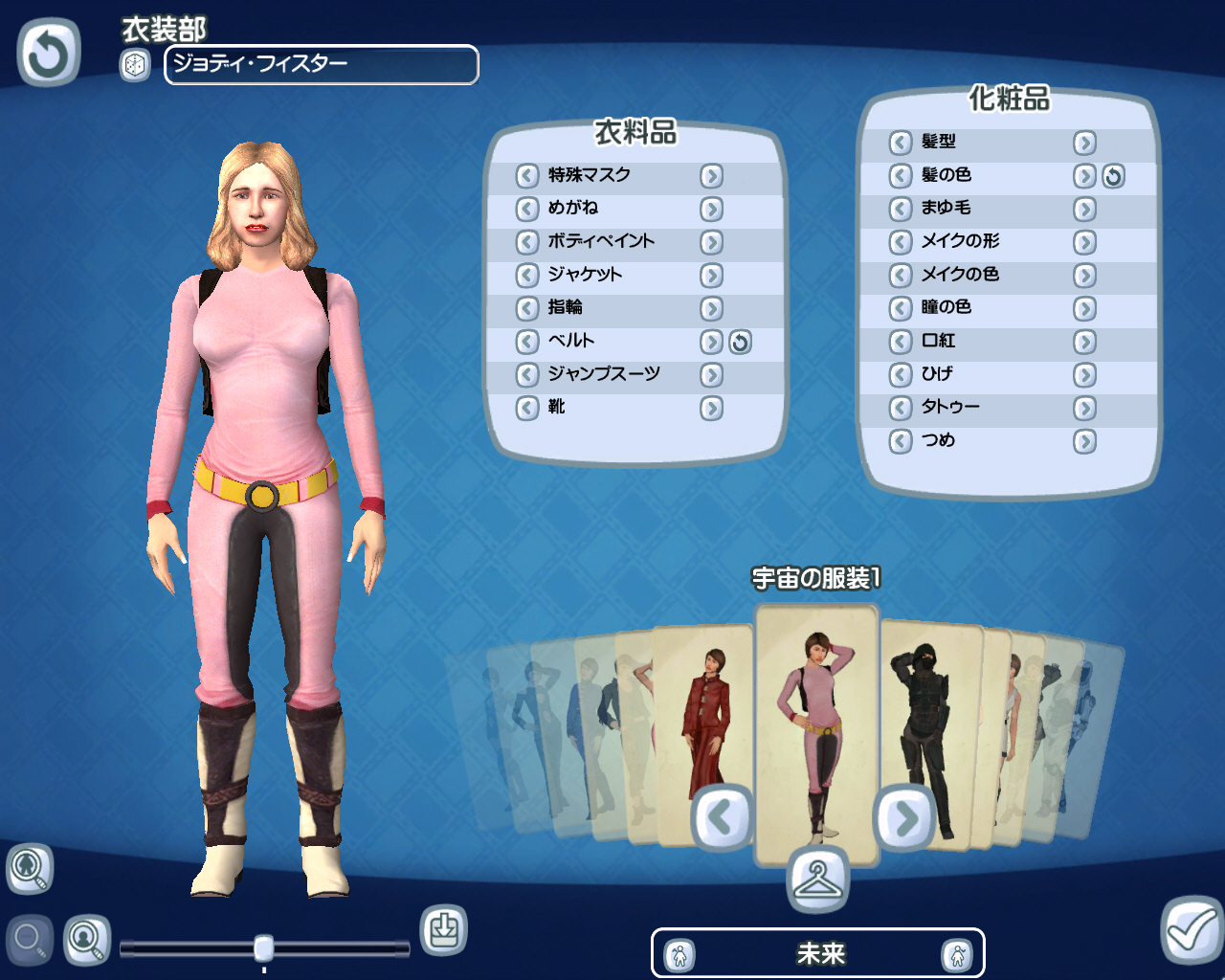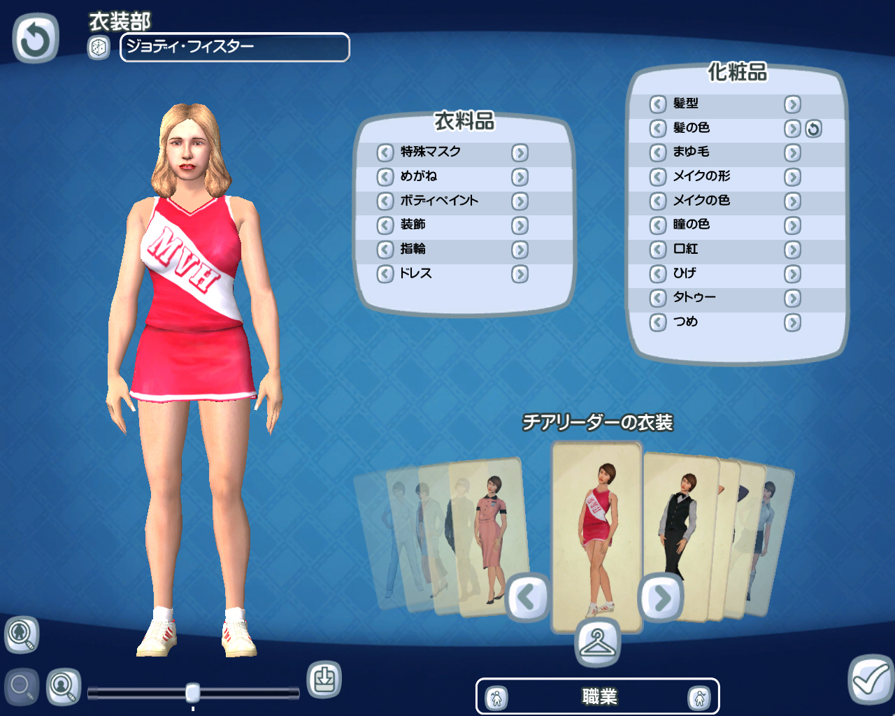 衣装は「カジュアル」「フォーマル」「下着」「職業」「軍隊」「西部」「未来」「モンスター」のカテゴリに分類され,ほとんどの衣装で複数のカラーやデザインが用意されている。また,衣装に合わせた靴やアクセサリの追加,髪型,メイクの変更などもできるので,スター達を着飾ってやろう。