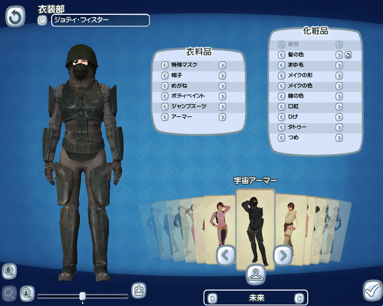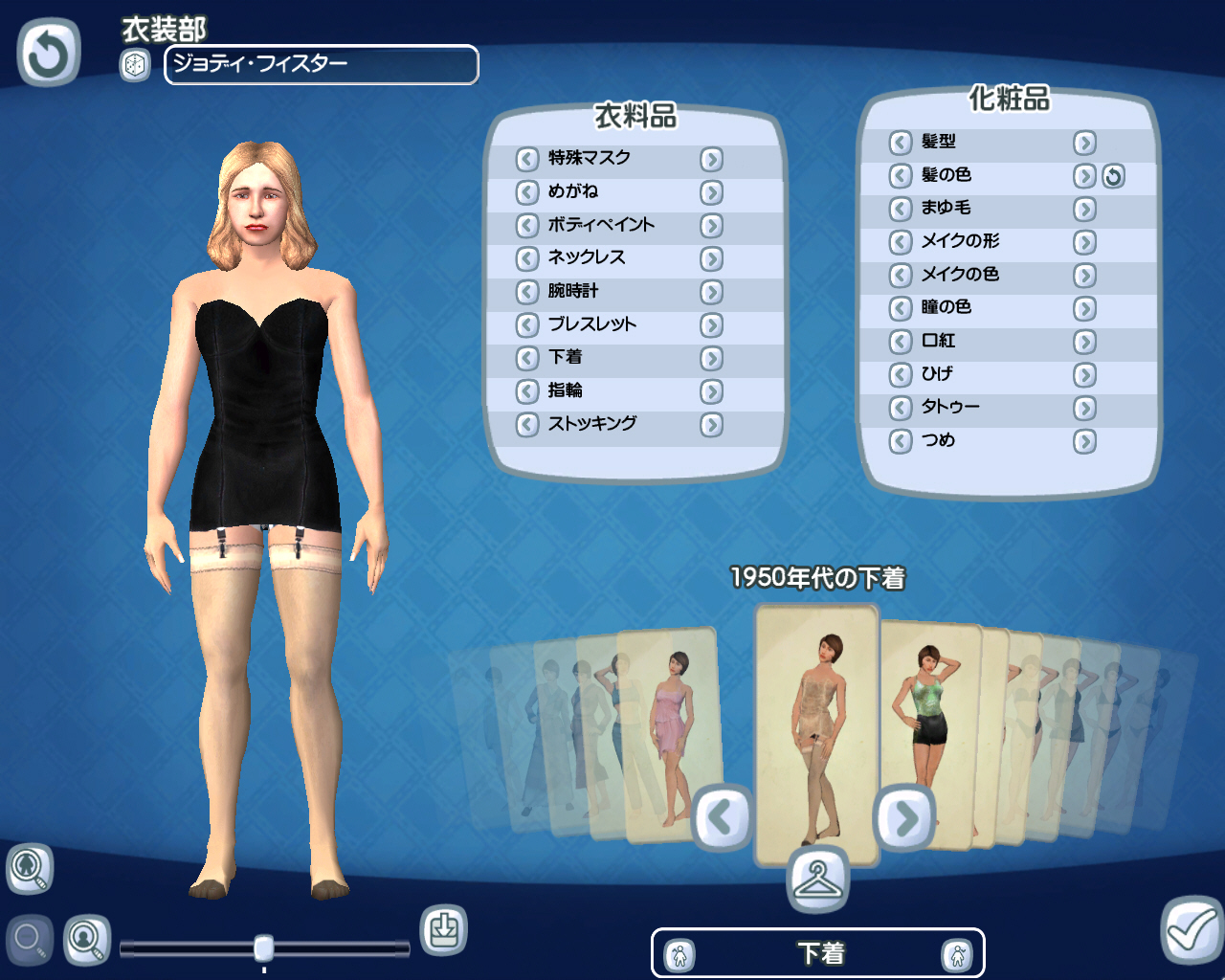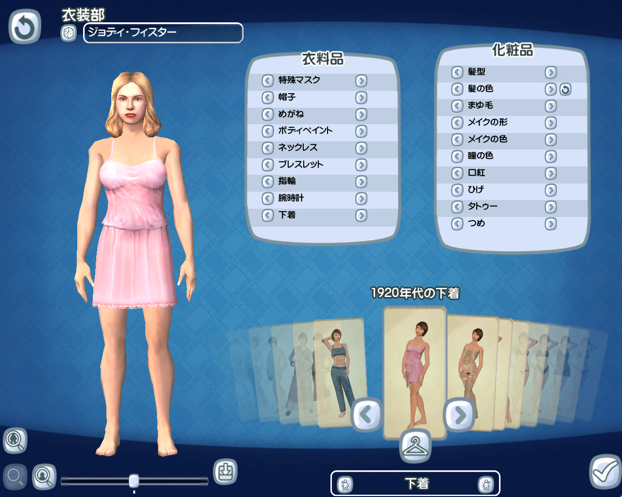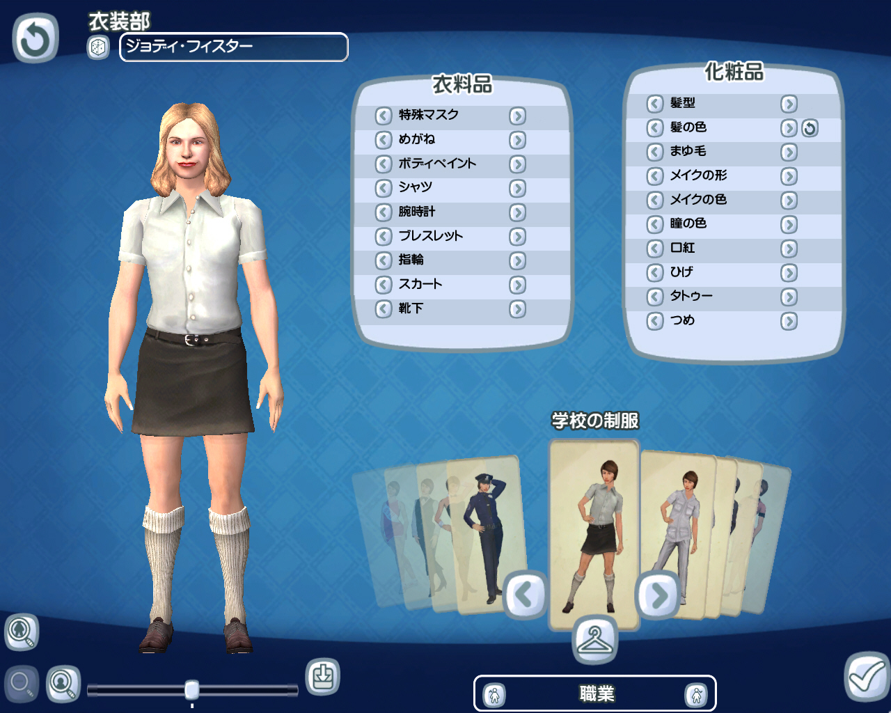 衣装は「カジュアル」「フォーマル」「下着」「職業」「軍隊」「西部」「未来」「モンスター」のカテゴリに分類され,ほとんどの衣装で複数のカラーやデザインが用意されている。また,衣装に合わせた靴やアクセサリの追加,髪型,メイクの変更などもできるので,スター達を着飾ってやろう。