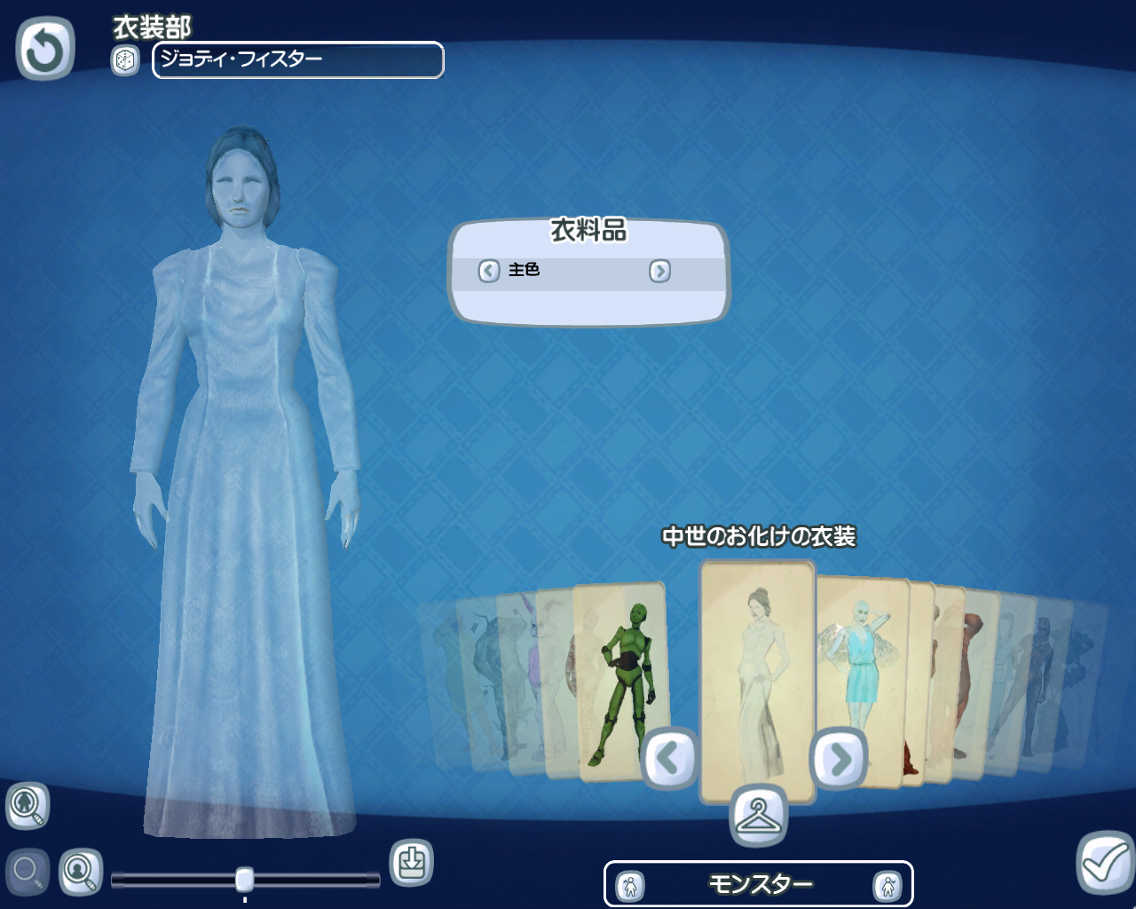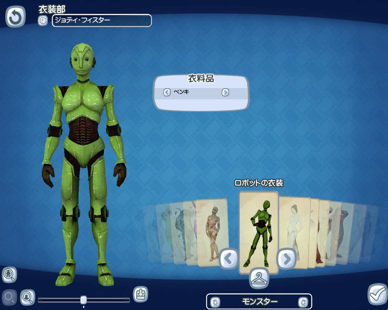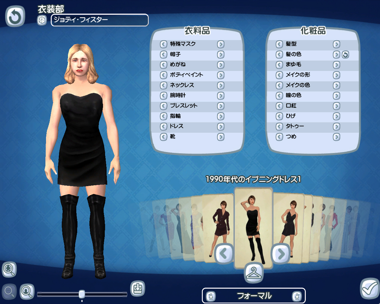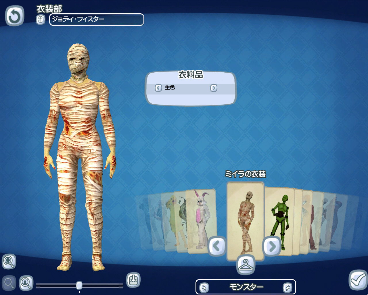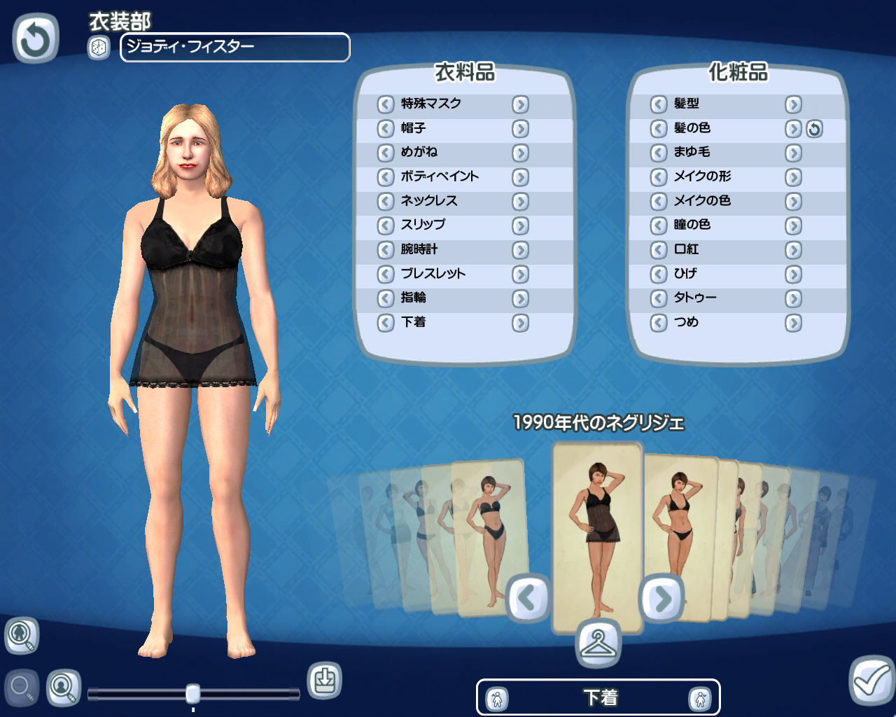 衣装は「カジュアル」「フォーマル」「下着」「職業」「軍隊」「西部」「未来」「モンスター」のカテゴリに分類され,ほとんどの衣装で複数のカラーやデザインが用意されている。また,衣装に合わせた靴やアクセサリの追加,髪型,メイクの変更などもできるので,スター達を着飾ってやろう。