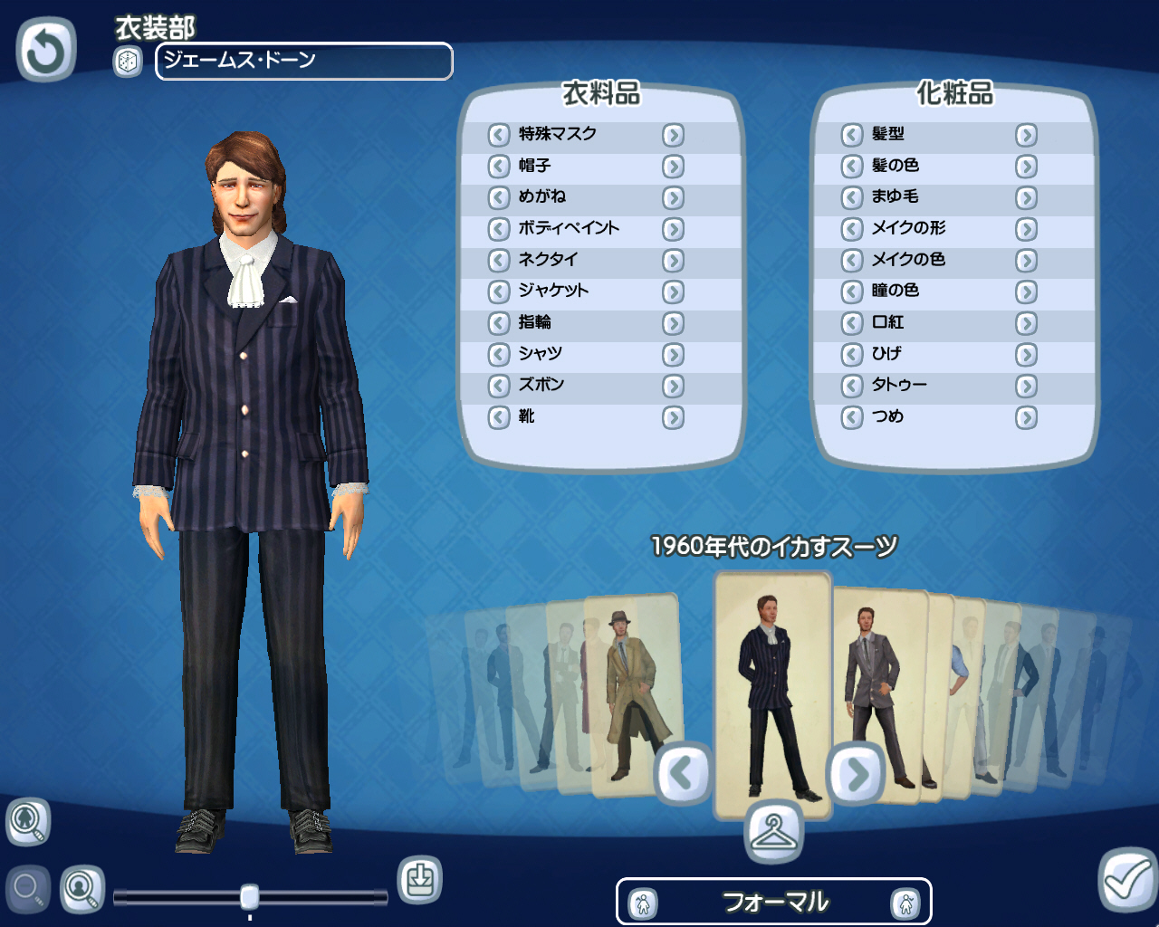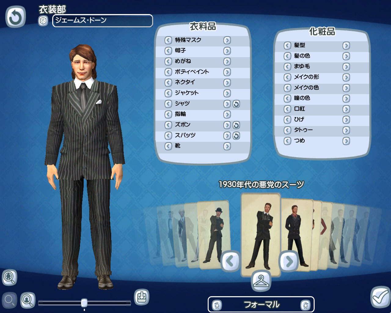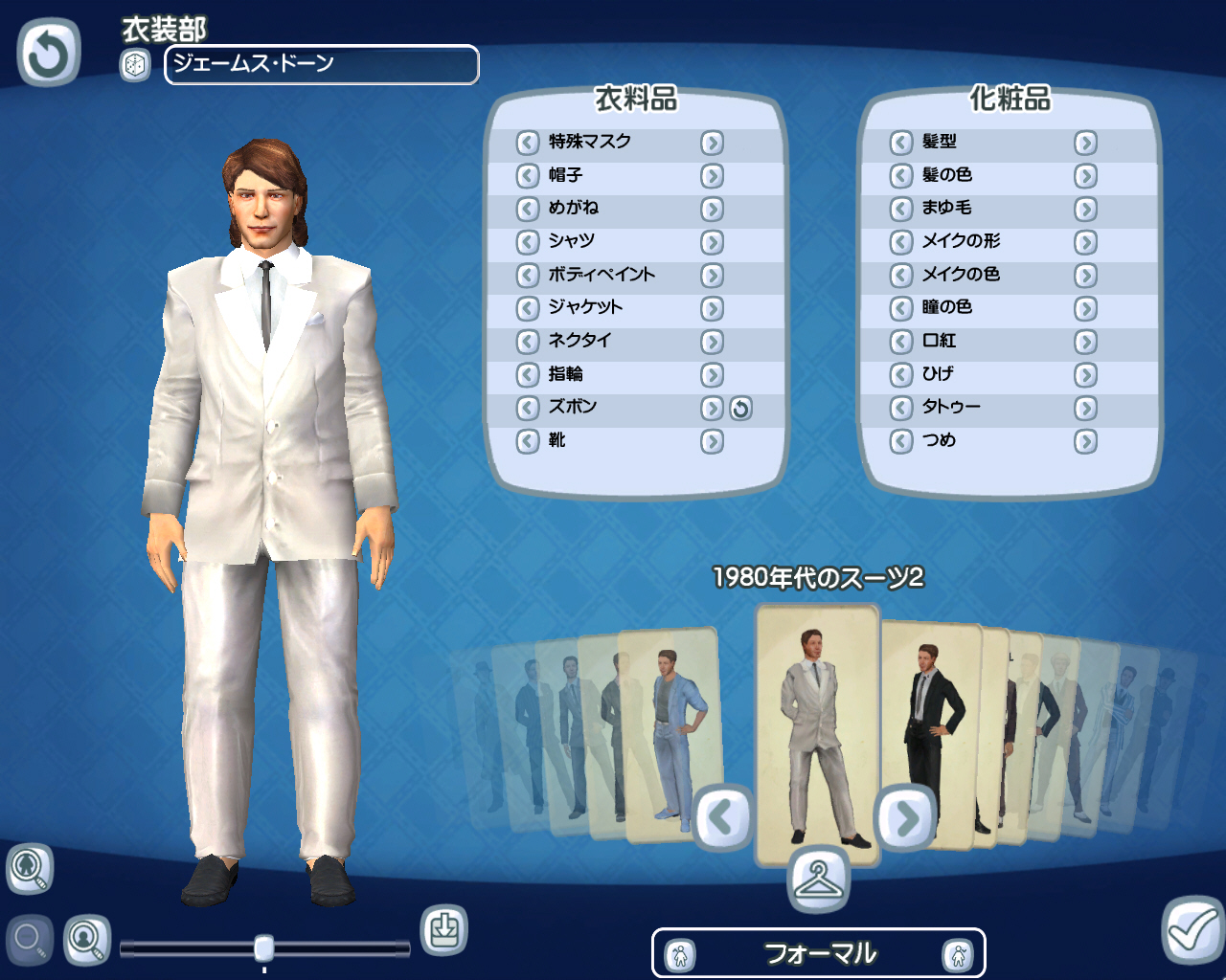 男性ならスーツ,女性ならドレスがメインとなるフォーマル。さまざまな映画のシーンで役立つのはもちろん,セレブな年配向けの普段着としても大いに使える。なんだか滑稽なものも多い。