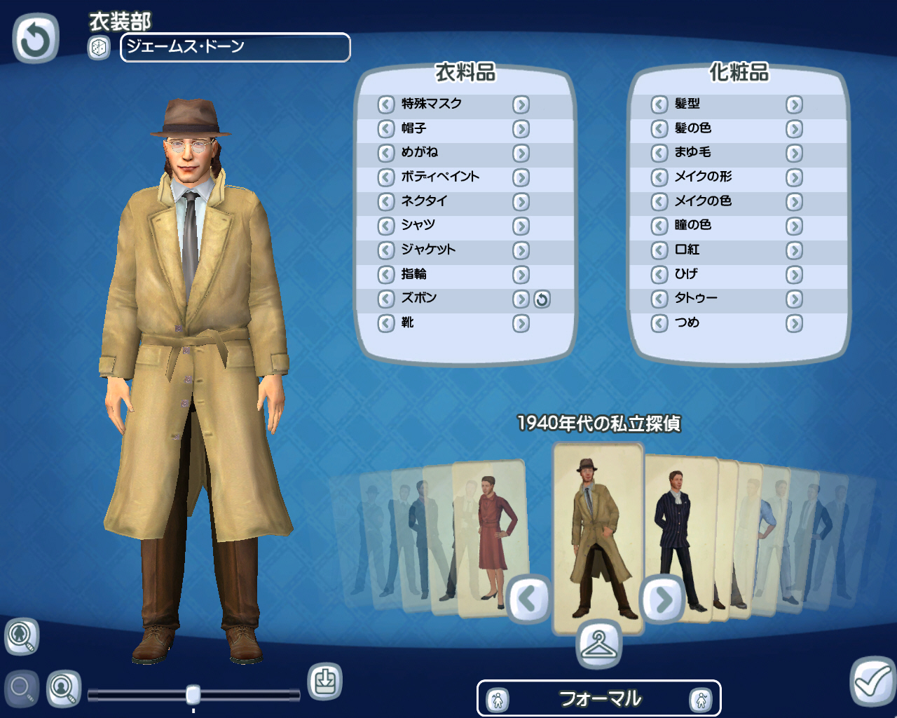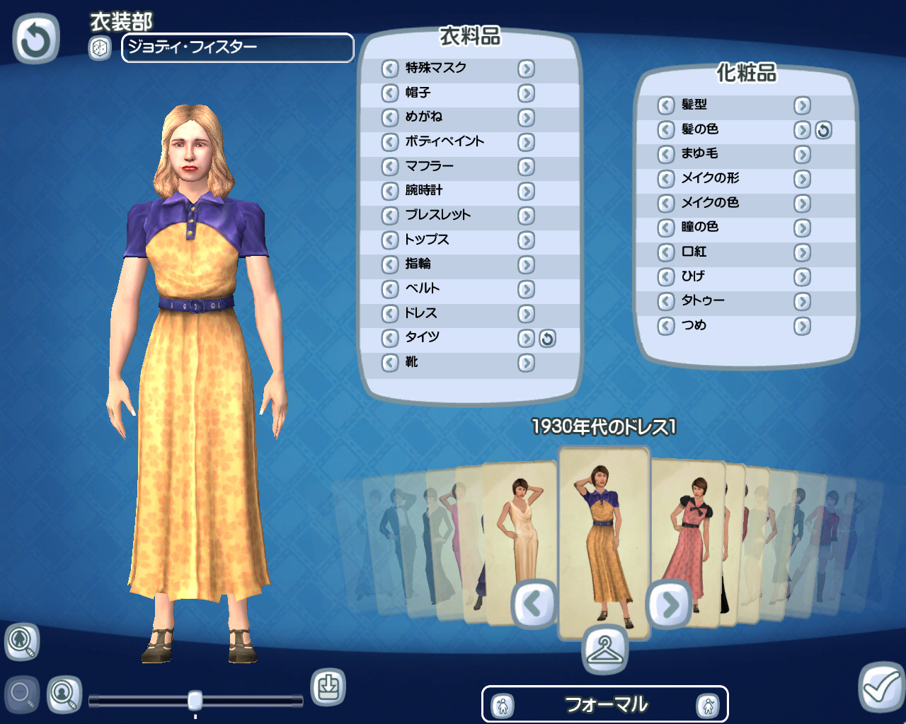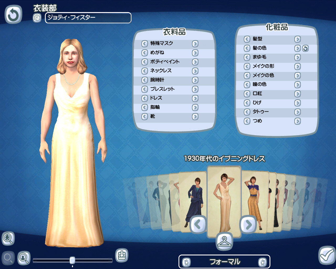 男性ならスーツ,女性ならドレスがメインとなるフォーマル。さまざまな映画のシーンで役立つのはもちろん,セレブな年配向けの普段着としても大いに使える。なんだか滑稽なものも多い。