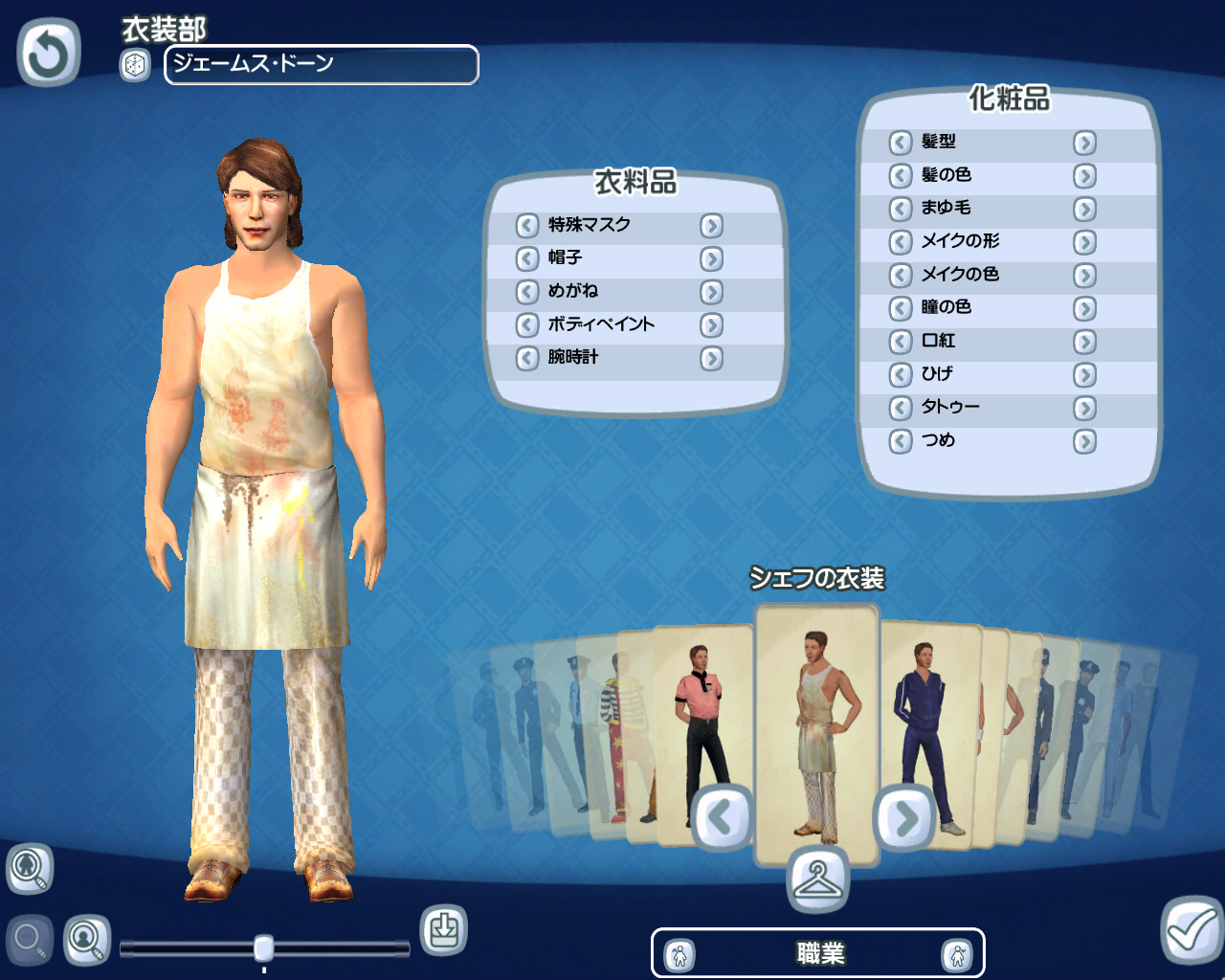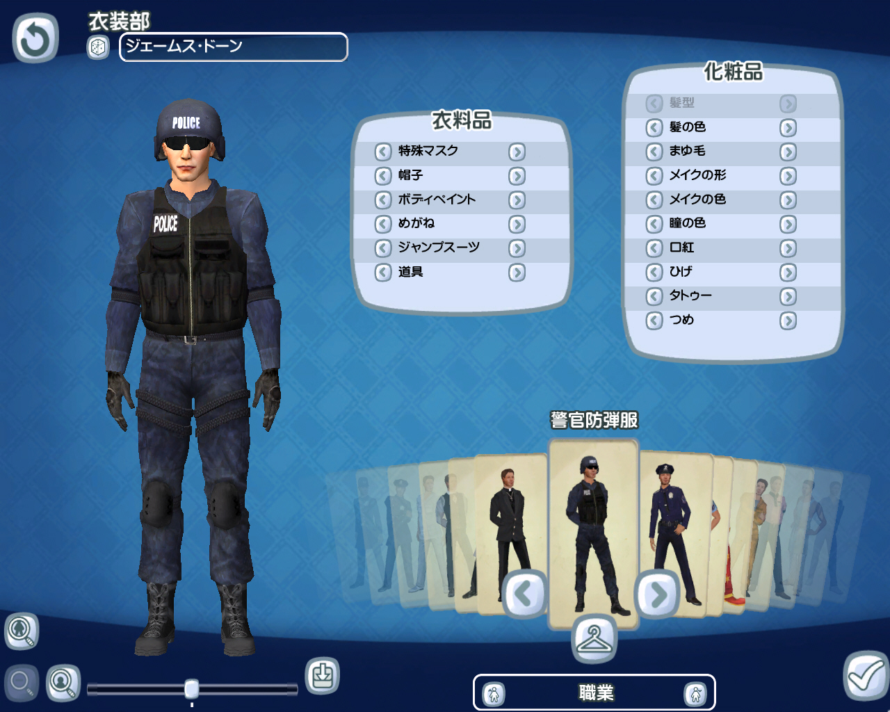 警察官,シェフ,ウエイトレスといった,さまざまな職業別の衣装が用意されている。しかし「病院」「レストラン」のセットがないのは困ったもので,結局は警察官が一番使えるかも。