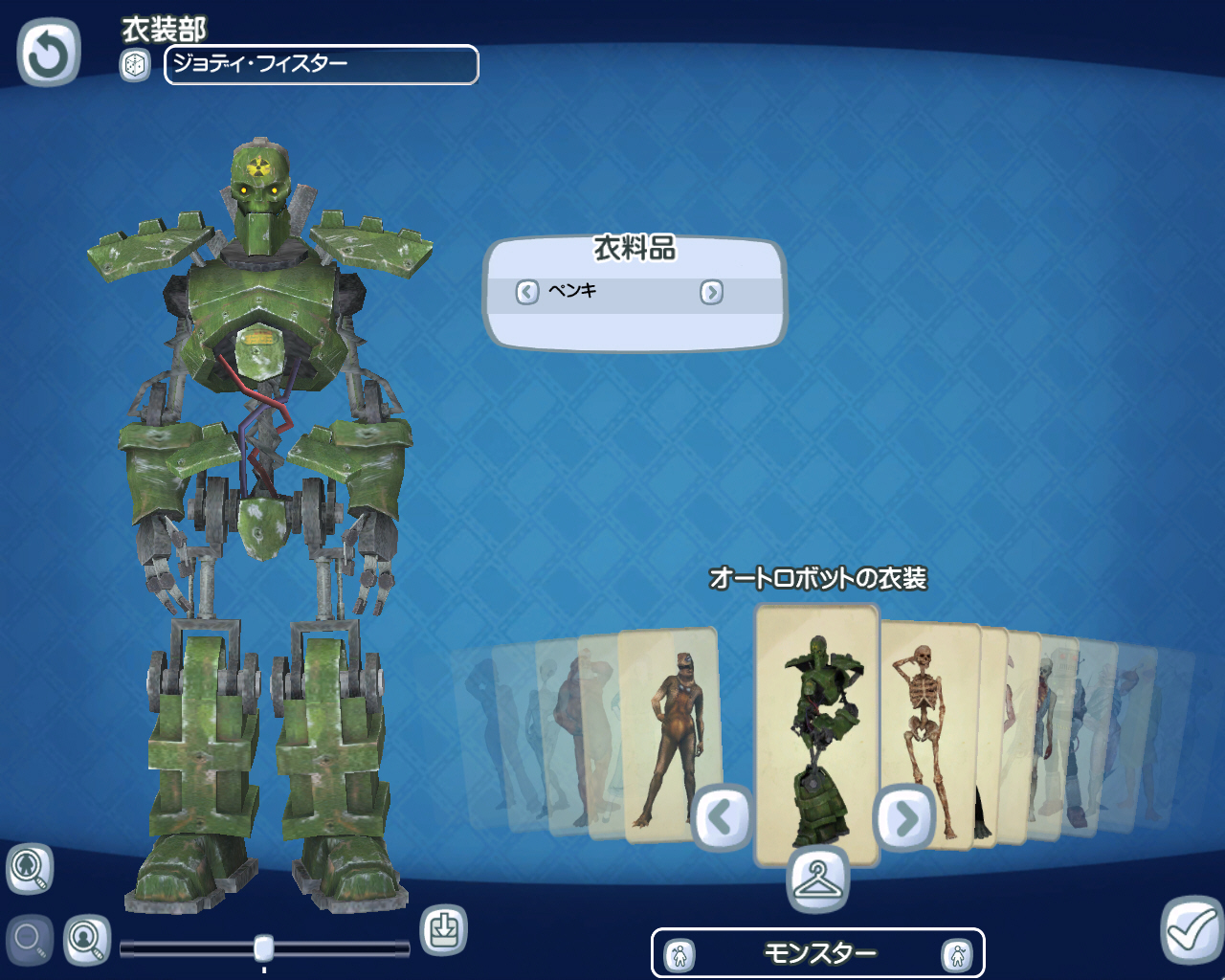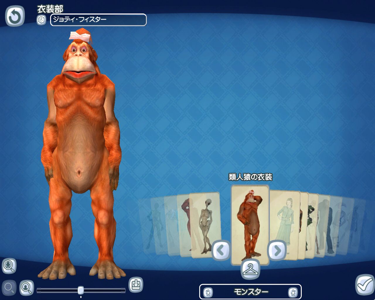 着ぐるみや特殊メイクが揃っている。スターになればなるほど,この衣装を着せると機嫌が悪くなるようなので,エキストラ用の衣装と考えてもいいかも。将来的にはCG技術が必要な高度なものも登場する。