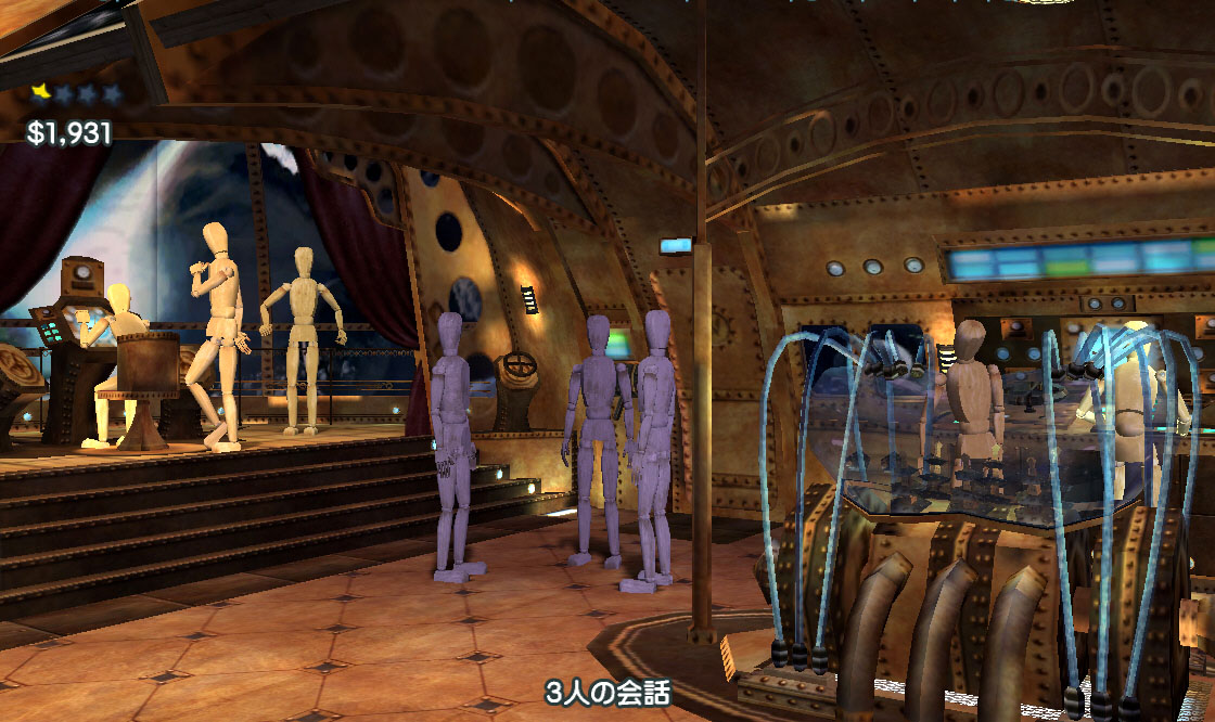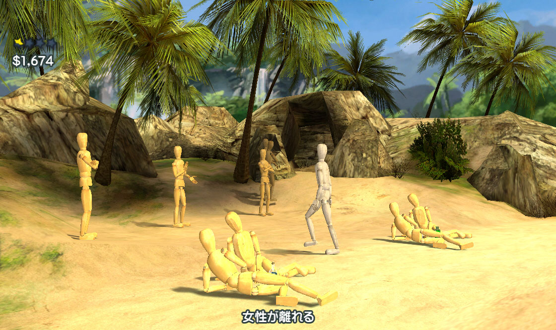 トロピカルムード漂う「南国:ビーチ」と,車を運転中のシーン(風景が流れる)を演出するのに便利な「移動中の乗り物:車」。どちらもバリエーションがなく,限定的なシーンでしか使えなさそうなので,「その他」にまとめた。また,一番最初に作れるセットである,舞台のみの「ステージ」は,壁紙を替えることで雰囲気を変えられるが,……当然,安っぽい。