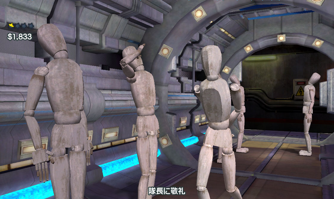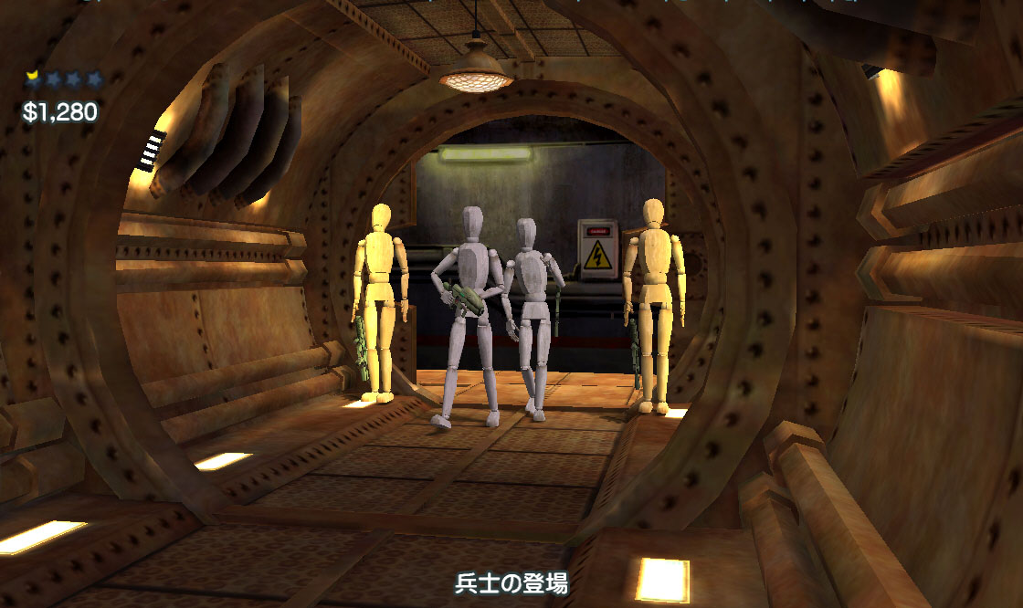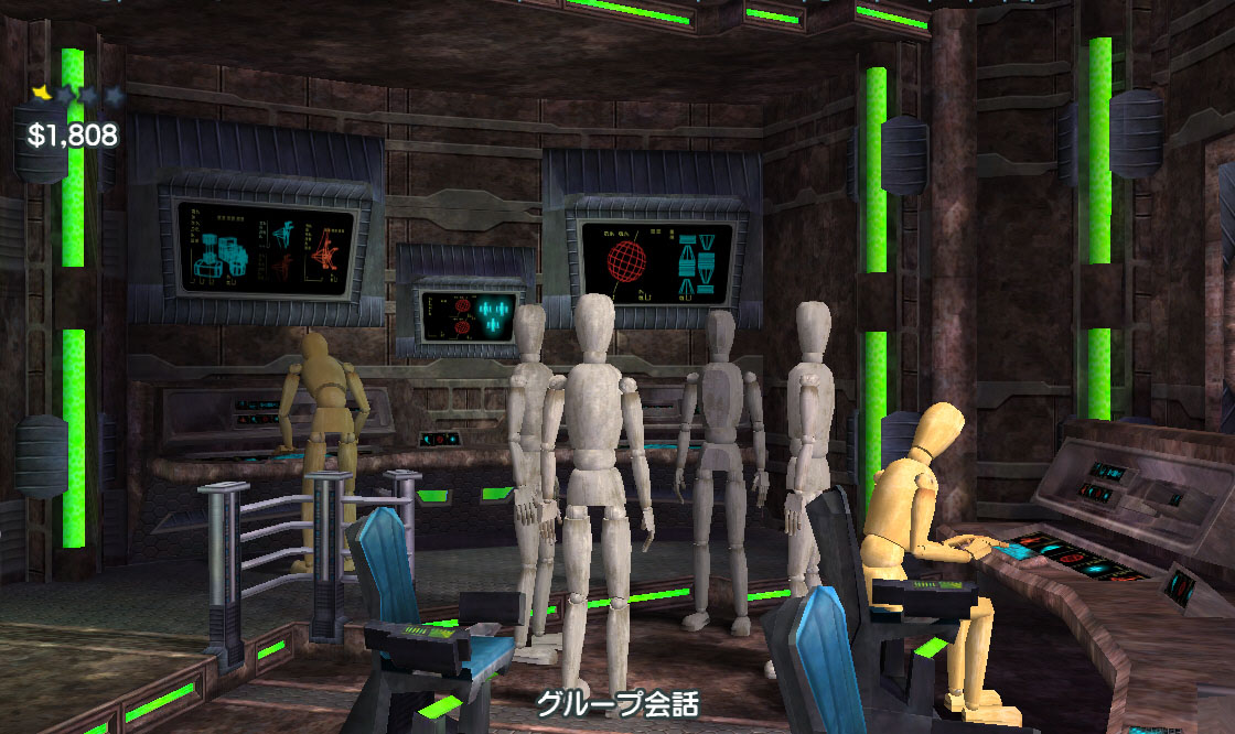 宇宙船の艦内を再現したセットが数種類用意されている。「宇宙戦艦の艦橋」や「通路」の三つをそれぞれ見比べてみると,このゲームの時間の移り変わりと進化について,少し分かるのではなかろうか。