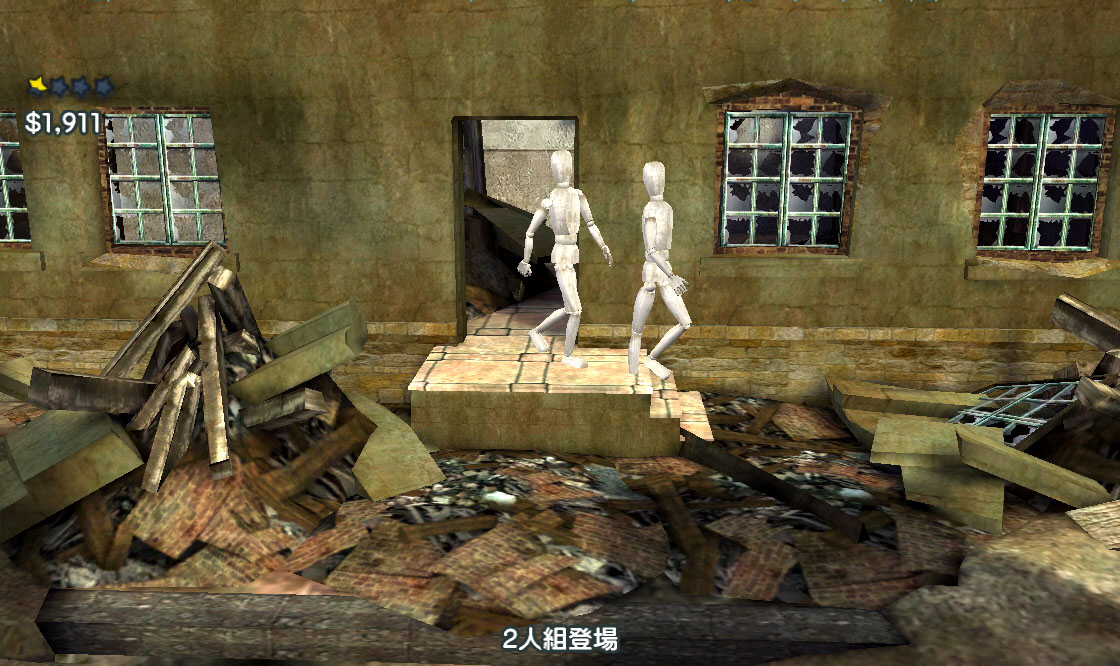 戦争映画用のセットはたったの2種類しかなく,ほかのカテゴリに比べると少々寂しい。ただし砲撃で破壊された廃墟や瓦礫が散乱する「爆破された道路」は,セット自体が巨大なので,路上から建物の中まで,それなりに豊富なシチュエーションに対応できるだろう。「プライベート・ライアン」の後半などでも見かけたような,殺伐としたいい雰囲気だ。