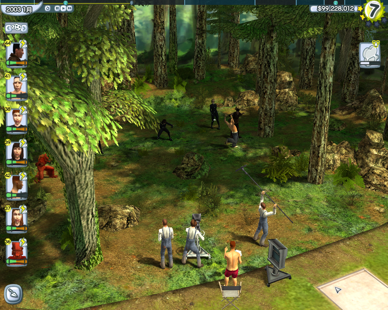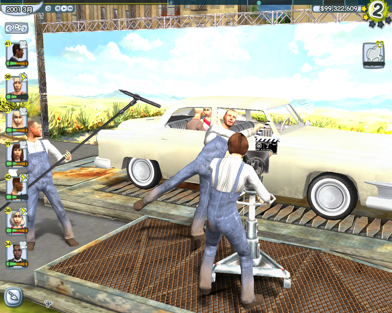 本作では,全撮影をスタジオのセット内で行う。撮影できる舞台は「SF」「戦争」「田舎」「西部」「郊外」「都市」に含まれる41セット,そして「その他」に含まれる「南国:ビーチ」「移動中の乗り物:車」,あとは壁紙だけを替えるという簡素な「ステージ」のみ。つまりセットにないロケーション,例えば飛行機の機内や豪華クルーズの船内だとか,ナルニア国だとか,ライ麦畑だとか,そういった舞台の映画が撮りたい場合は現在あるセットでうまくごまかすか,きっぱりあきらめるかしかない。