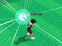 ![]() アイテムでボールに強烈なスピンを掛けて打った瞬間。とはいえ,こういったアイテムを使わずに普通にプレイすることも可能だ |