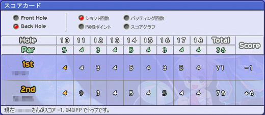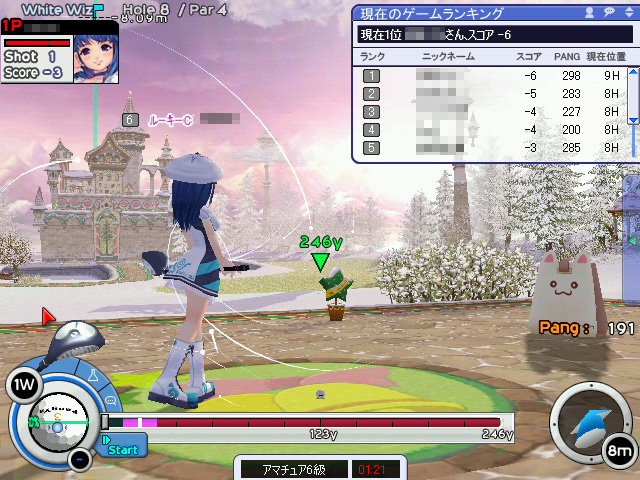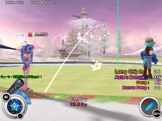 このところ,飛距離が伸びる"パンヤショット"や,10ヤードを超えるようなロングパットの成功率が,プレイするにつれて少しずつアップしてきているのが自分でもよく分かる。このあたりの上達を実感できるのが面白く,ついつい打ち込んでしまい,気がつくと筆者のゲーム内のランクは"ルーキーB"になっていた。